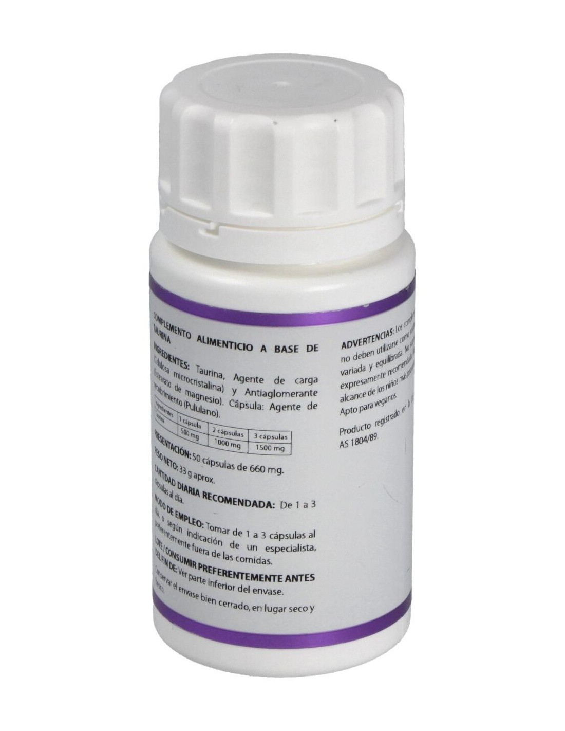 Ingredientes activos por cápsula:500 mg de taurina.Modo de empleo:Tomar de 1 a 3 cápsulas al día, preferentemente con las comidas.Presentación:Bote de 50 cápsulas.