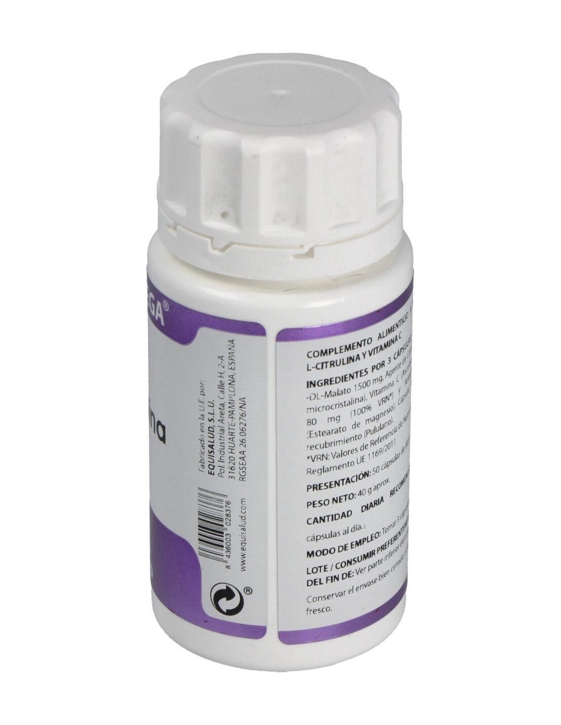 La citrulina malato también puede promover aumento de la producción de energía aeróbica, y que la suplementación con este aminoácido no sólo beneficia a los que buscan entrenamientos más intensos, sino también a los atletas de pruebas de larga duración como los maratonistas. Personas con artritis reumatoide o citrulinemia (ausencia de enzimas relacionadas con el ciclo de la urea) pueden tener una fuerte intolerancia al malato de citrulina. Composición por cápsula:500 mg de L-Citrulina. Modo de empleo:Tomar 3 cápsulas al día, preferentemente antes de las comidas. Presentación:Bote de 50 cápsulas.