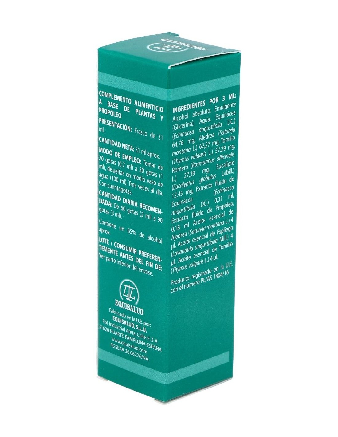 En esta fórmula se han unido plantas con una importante acción antiséptica y antivírica junto con propóleo y plantas capaces de potenciar el sistema inmunológico como la equinácea. Tiene también una acción antifúngica (hongos). Composición: