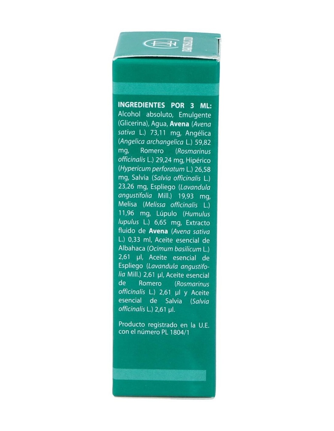 Se asocian plantas principalmente aromáticas, ricas en aceites esenciales, todas ellas reguladoras del sistema nervioso, unas por su acción directa sobre el mismo, otras por su acción hormonal como salvia, basílico o lúpulo, otras con acción directa sobre las glándulas suprarrenales como romero, salvia y basílico y otras antidepresivas como hipérico o basílico. Aunque algunas de ellas son estimulantes del sistema nervioso y otras depresoras del mismo, esta fórmula a dosis pequeñas actúa como reguladora-armonizadora del sistema nervioso. Es importante destacar la acción reguladora hormonal, sobre todo a nivel de las glándulas suprarrenales, que poseen algunas plantas. Se incluyen debido a la estrecha relación que existe entre sistema nervioso y el funcionamiento equilibrado de las hormonas hipofisiarias y derivadas. Composición: