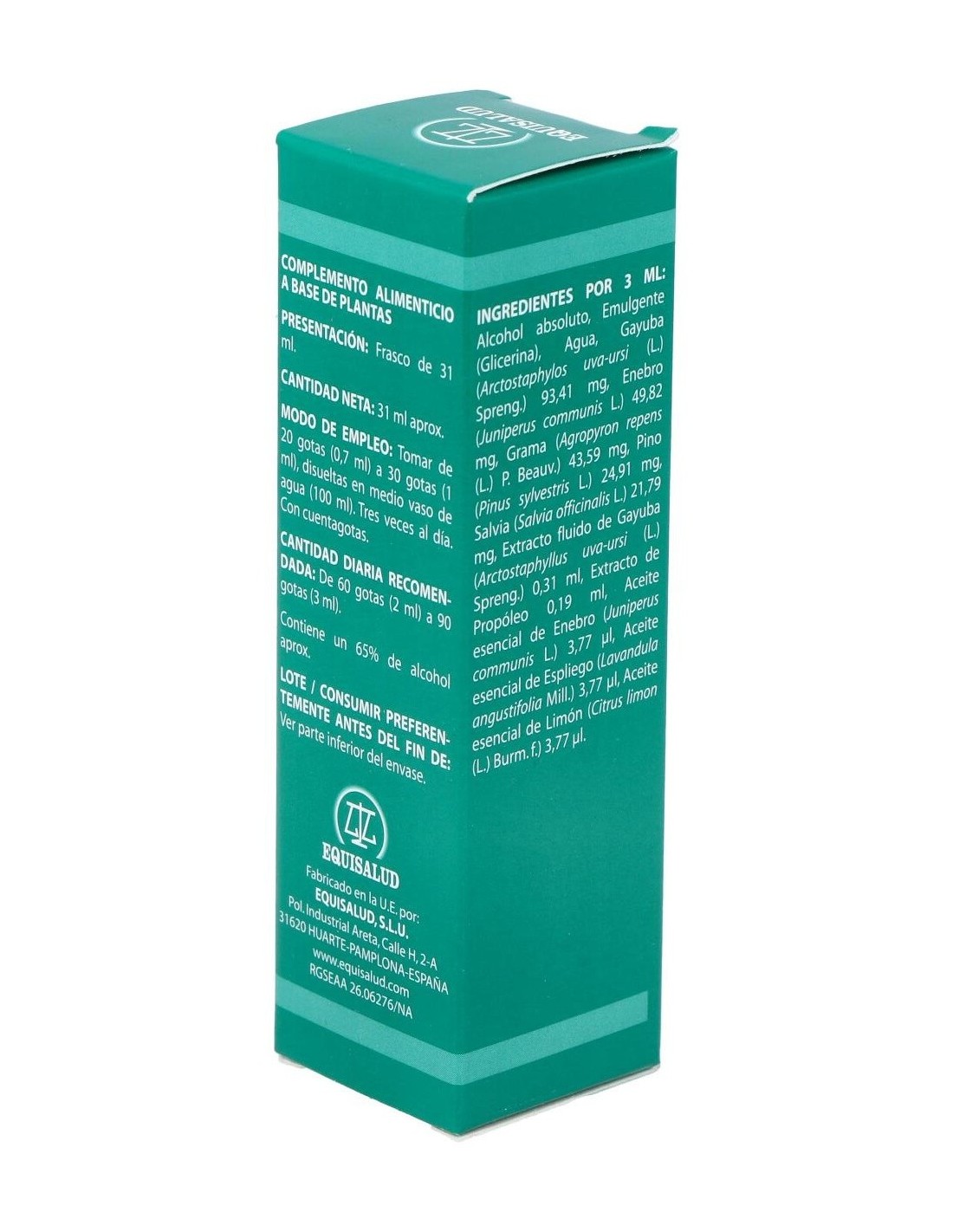 Se asocian plantas con propiedades antisépticas de las vías urinarias y con propiedades diuréticas. La grama aporta silicio regenerador y es antiespasmódico. El propóleo aporta también su propiedad antibacteriana. Composición: