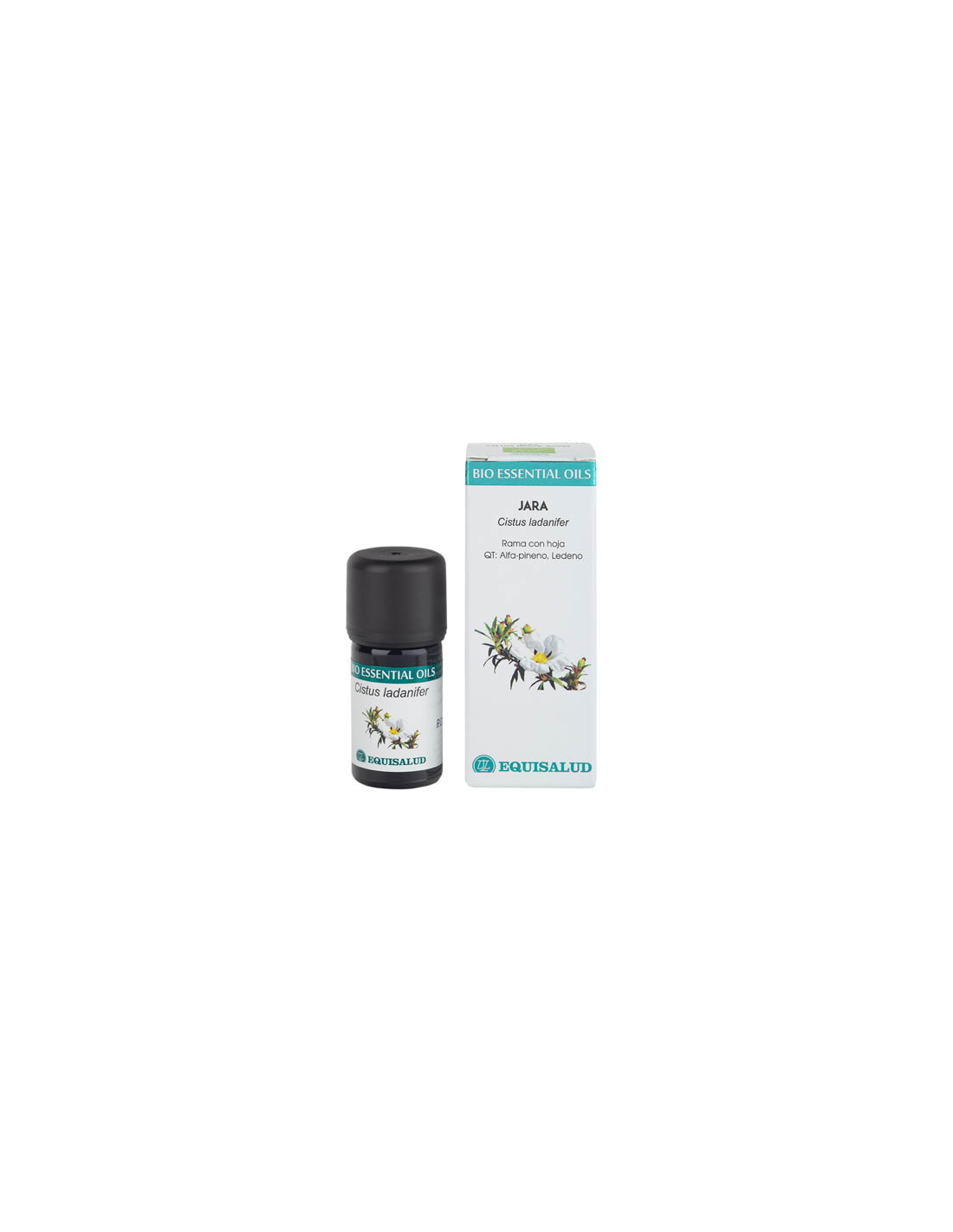 Composición (siendo la unidad de medida 5 ml): 100% aceite esencial de jara (Cistus ladanifer L., rama con hoja) ecológico. QT: Alfa-pineno, Ledeno.