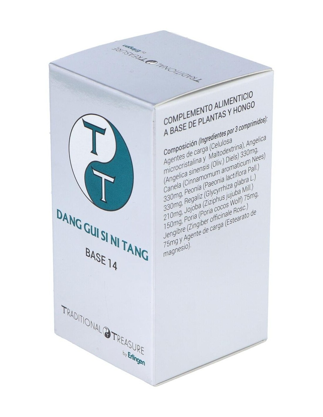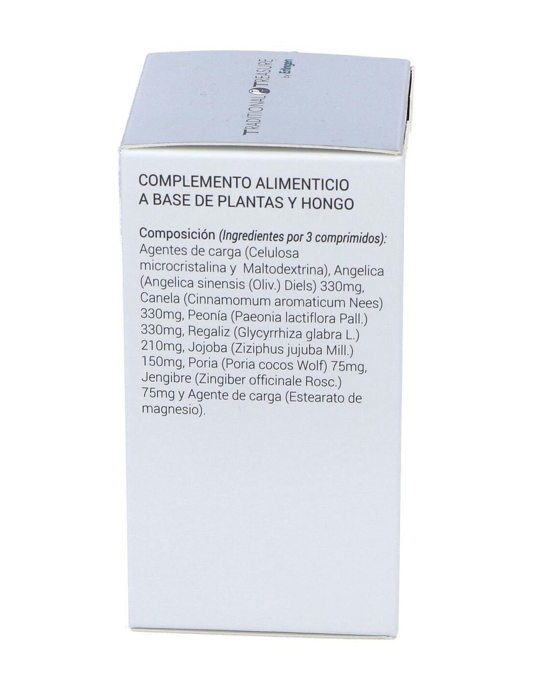 Agentes de carga (Celulosa microcristalina y Maltodextrina), Angélica (Angelica sinensis (Oliv.) Diels) 330 mg, Canela (Cinnamomum aromaticum Nees) 330 mg, Peonía (Paeonia lactiflora Pall.) 330 mg, Regaliz (Glycyrrhiza glabra L.) 210 mg, Jojoba (Ziziphus jujuba Mill.) 150 mg, Poria (Poria cocos Wolf) 75 mg, Jengibre (Zingiber officinale Rosc.) 75 mg y Agente de carga (Estearato de magnesio).