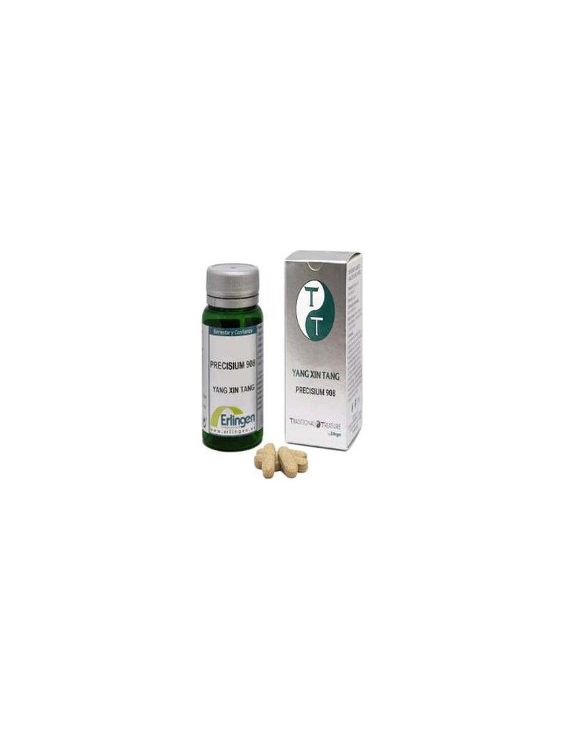 Complemento alimenticio de Erlingen Precisium nº 908. Formulada basada con agentes de carga (Celulosa microcristalina y Maltodextrina), Ginseng (Panax ginseng C.A. Mey), Jojoba (Ziziphus jujuba Mill.), Ophiopogon (Ophiopogon japonicus (L.f.) Ker-Gawl.), Angélica (Angelica sinensis (Oliv.) Diels), Remania (Rehmannia glutinosa (Gaertn.) Libosch.), Poria (Poria cocos Wolf), Schisandra (Schisandra chinensis (Turcz.) Baill.), Regaliz (Glycyrrhiza glabra L.) y Agente de carga (Estearato de magnesio). La fórmula derivada de la medicina tradicional china, contribuye a calmar los nervios, fortalecer la vitalidad del organismo y calmar la mente.