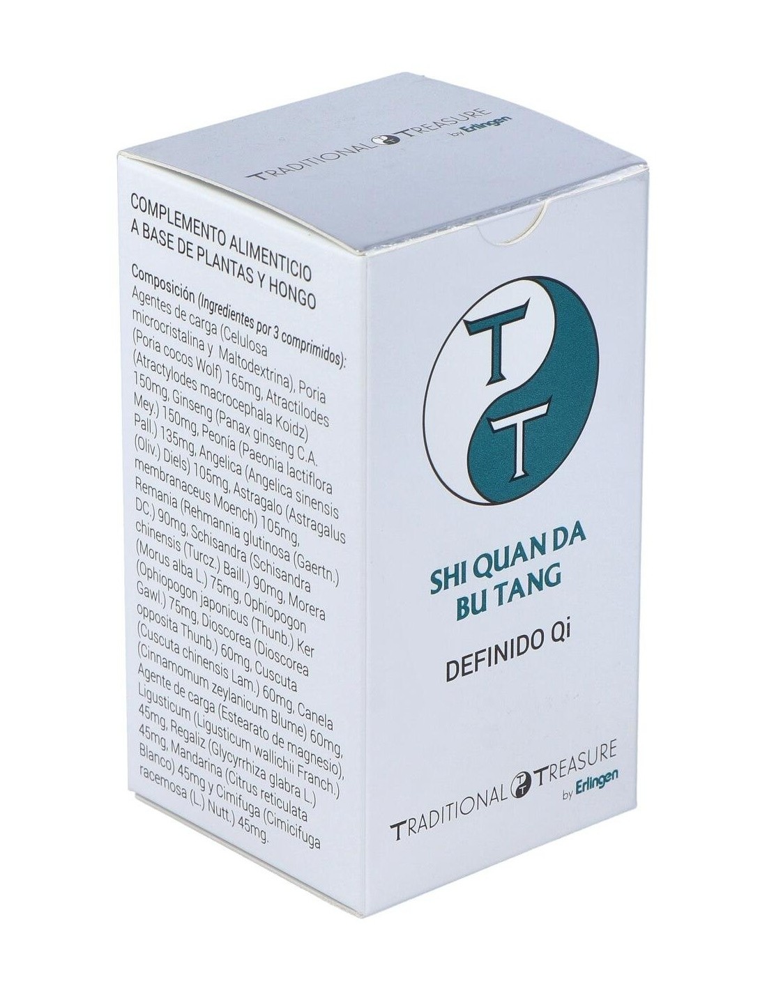 Ginseng (Panax Ginseng C.A. Meyer), Poria (Poria Cocos Wolf), Atractilodes (Atractylodes Macrocephala Koidz.), Astrágalo (Astragalus Membranaceus Moench), Angélica (Angelica Sinensis Diels), Mandarina (Citrus Reticulata Blanco), Schisandra (Schisandra Chinensis (Turcz.) Baill.), Dioscorea (Dioscorea Opposita Thunb.), Renania (Rehmannia Glutinosa (Gaertn.) Libosch.), Canela (Cinnamomum Zeylanicum Blume), Clavo (Syzygium Aromaticum L.) Merr. Et L.M. Perry), Tomillo (Thymus Vulgaris L.), Nogal (Juglans Regia L.), Genciana (Gentiana Lutea L.), Morera (Morus Alba L.), Helenio (Inula Helenium L.), Romero (Rosmarinus Officinalis L.) Y Agentes de Carga (Celulosa Microcristalina, Maltodextrina Y Estearato de Magnesio).