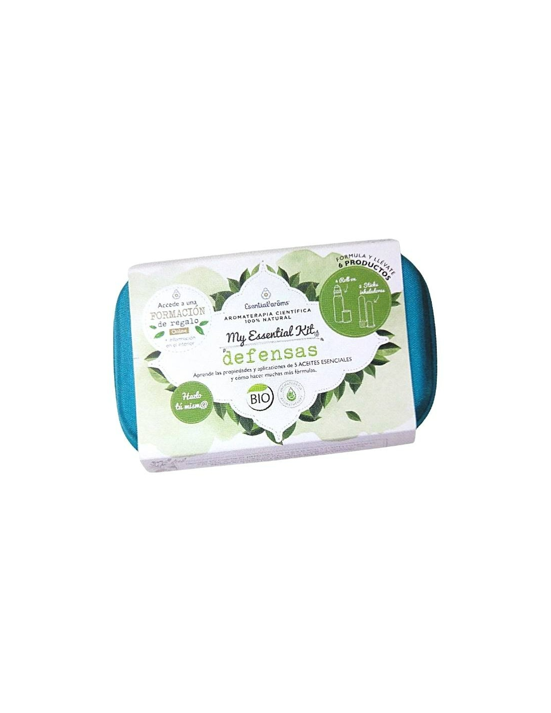 ESENTIAL AROMSMy essential kit defensas contiene 3 aceites vegetales, 5 aceites esenciales, 4 roll-on y 2 sticks inhaladores, con los que podrás desarrollar tú mism@ 6 productos diferentes, así como otras 4 aplicacinoes que te ayudarán a afrontar la estación invernal y protegerte de los agresores externos a través de las propiedades antimicrobianas únicas de sus aceites esenciales.