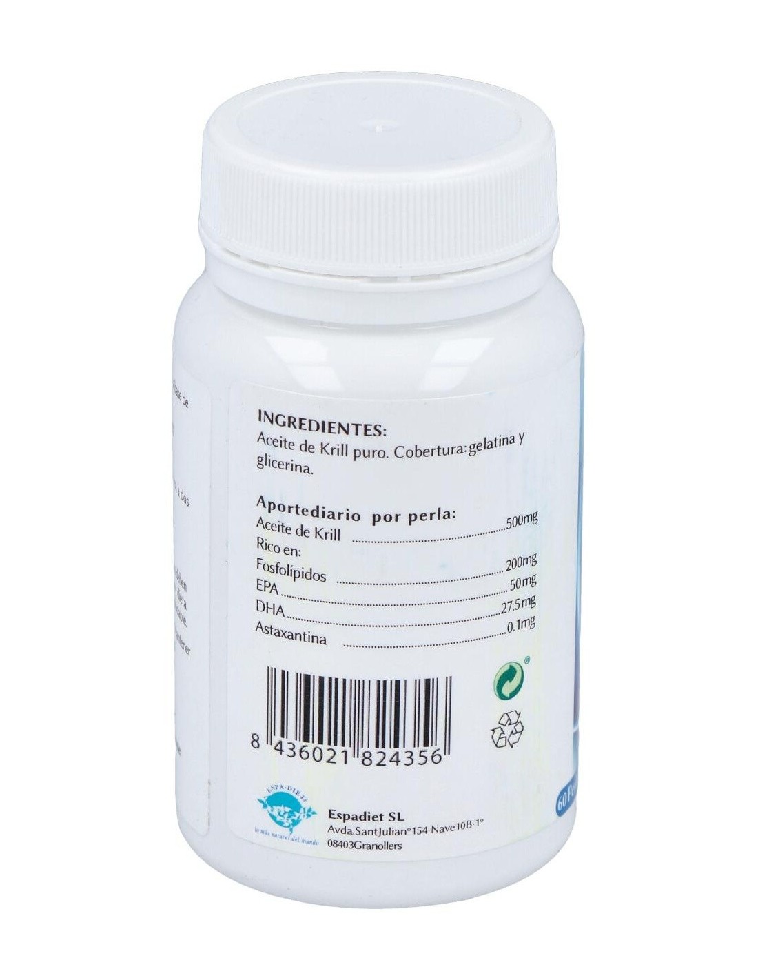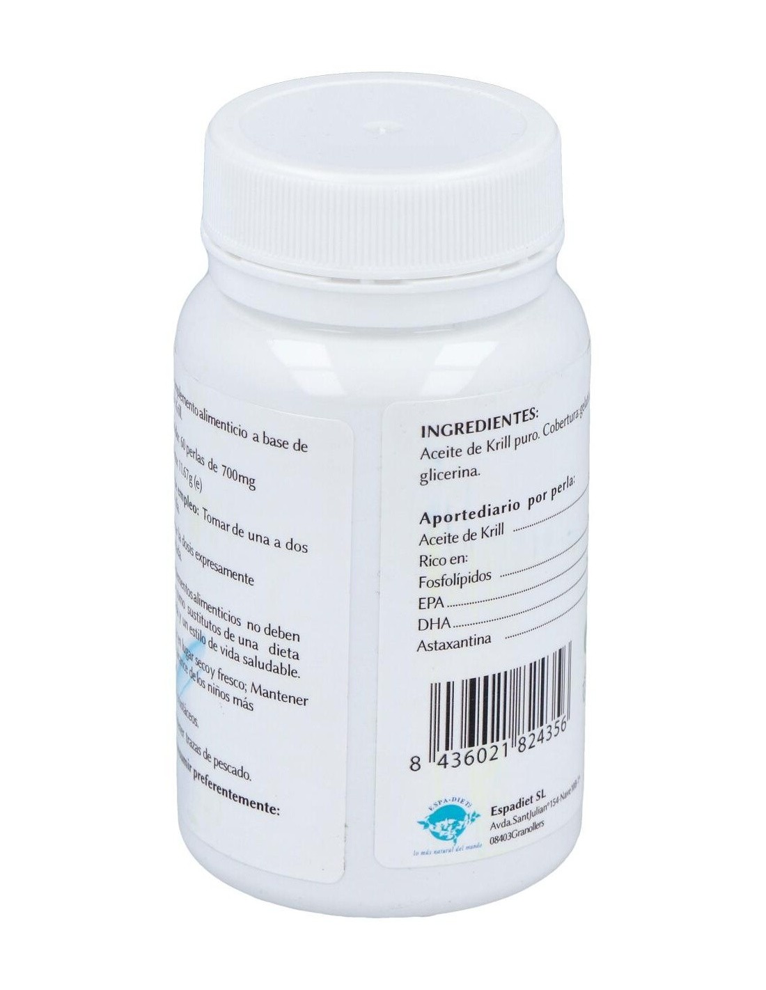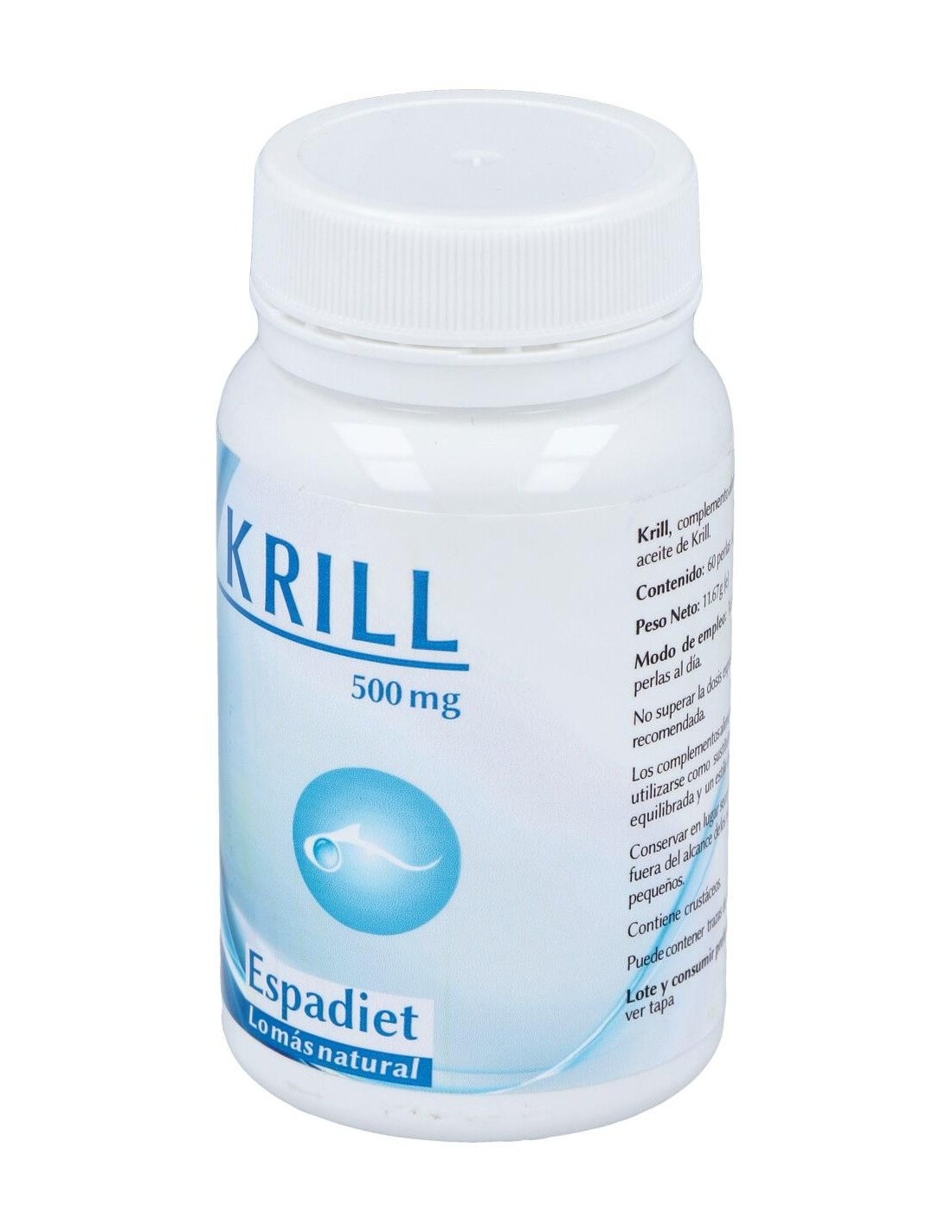 ESPADIETEl Krill 500 Mg. 60Perlas de Espadiet es un suplemento nutricional para adultos que aporta ácidos grasos omega-3, facilitando el mantenimiento del bienestar general mediante su fórmula concentrada en aceite de krill.