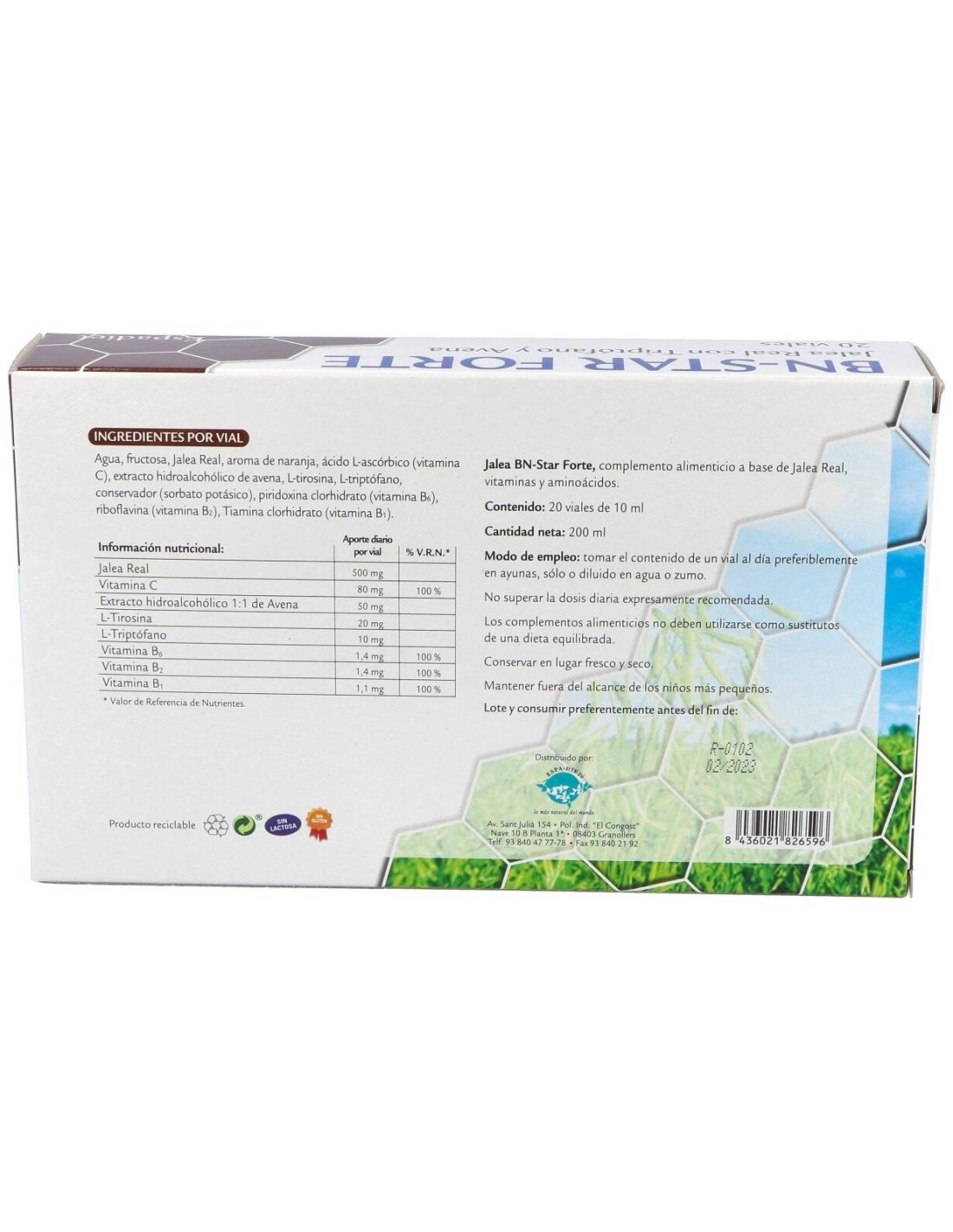ESPADIETLa Jalea Bn Forte (Bien Estar) 20 Viales de Espadiet es un complemento alimenticio para personas que buscan apoyar su bienestar general, formulado con ingredientes que contribuyen a la vitalidad diaria.
