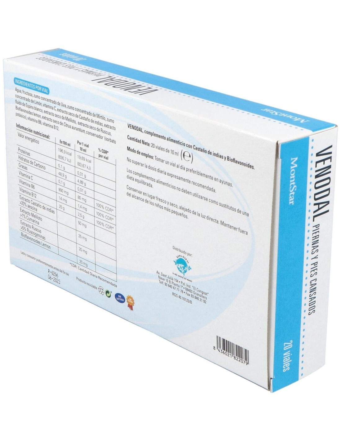 Agua, Fructosa, Zumo Concentrado De Uva (Vitis Vinífera), Zumo Concentrado De Mirtilo, Zumo Concentrado De Limón, Vitamina C, Extracto Seco De Castaño De Indias, Extracto Fluido De Espino Blanco, Extracto Seco De Meliloto, Extracto Seco De Ruscus, Bioflavonoides Lemon, Extracto Seco De Citrus Aurantium, Conservador (Sorbato Potásico), Vitamina B6, Vitamina B12.