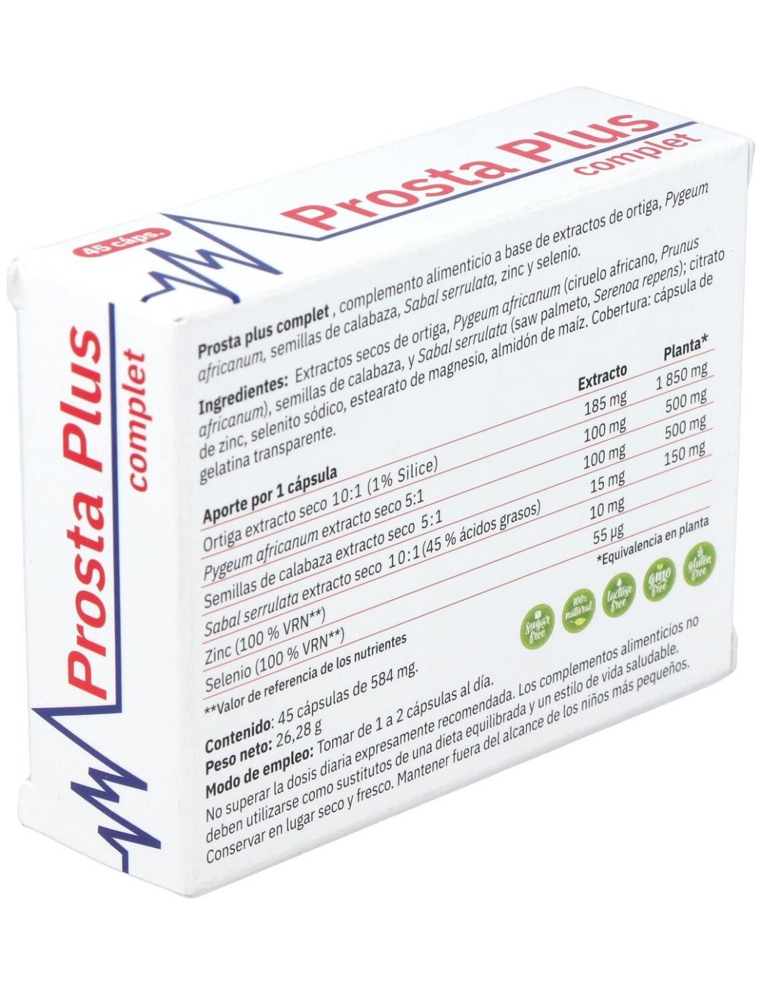 Prostaplus Complet 45Cap. de Espadiet es un complemento diseñado para personas que buscan apoyar su bienestar de manera natural y equilibrada. Su formulación está pensada para quienes desean mantener un estilo de vida activo y cuidar aspectos específicos de su salud.