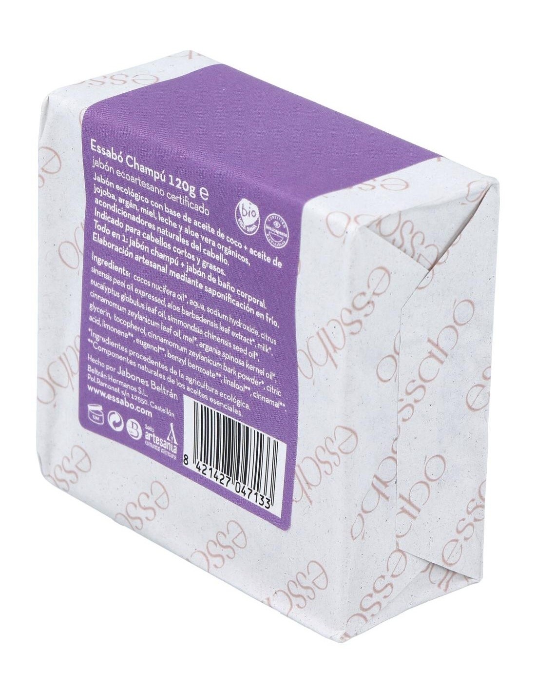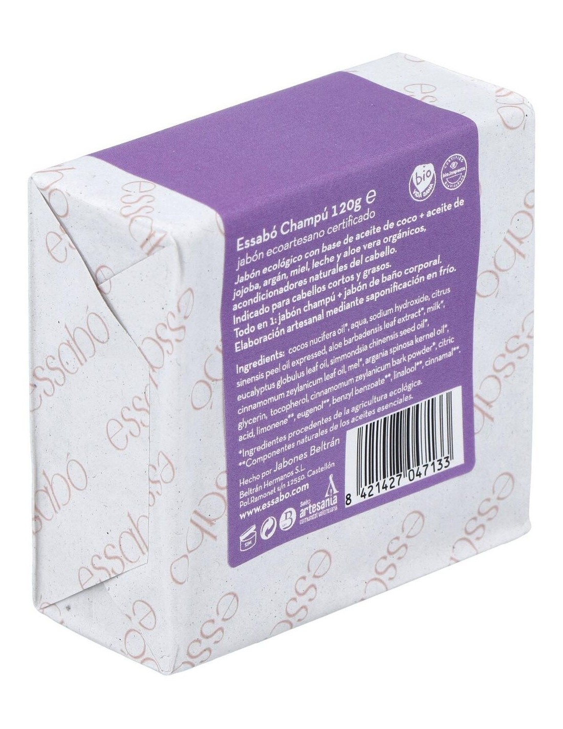ESSABOEssabó Champú es un jabón ecológico específico para el lavado del cabello, enriquecido con aceite de jojoba, argán y aloe vera ecológicos, acondiciona