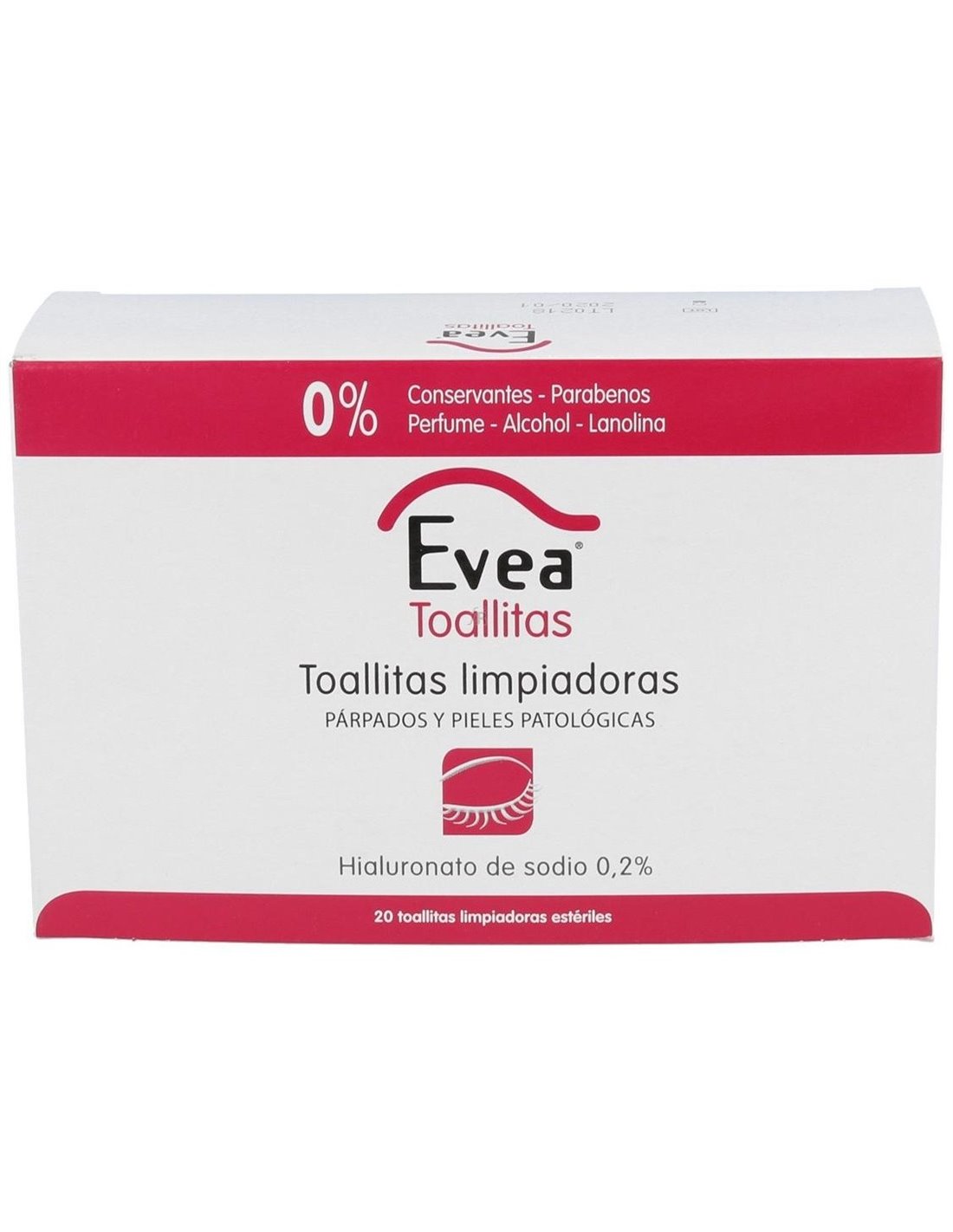 Uso externo.\ Con las manos previamente lavadas y secas, abrir el envoltorio y sacar la toallita EVEA®. Enrollarla alrededor del dedo índice. Con el ojo cerrado, masajear con suavidad el párpado y las pestañas con movimientos circulares. Con el ojo abierto, limpiar el borde libre del párpado en la base de las pestañas tirando suavemente\ del párpado hacia abajo.\ Repetir esta operación para el otro ojo, utilizando una nueva toallita EVEA®.\ Repetir la misma operación para la cara.\ No es necesario aclarar los párpados, las pestañas ni la cara después de utilizar las toallitas.