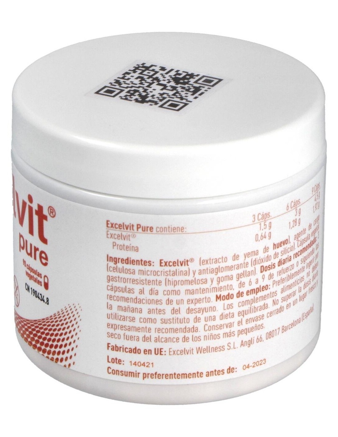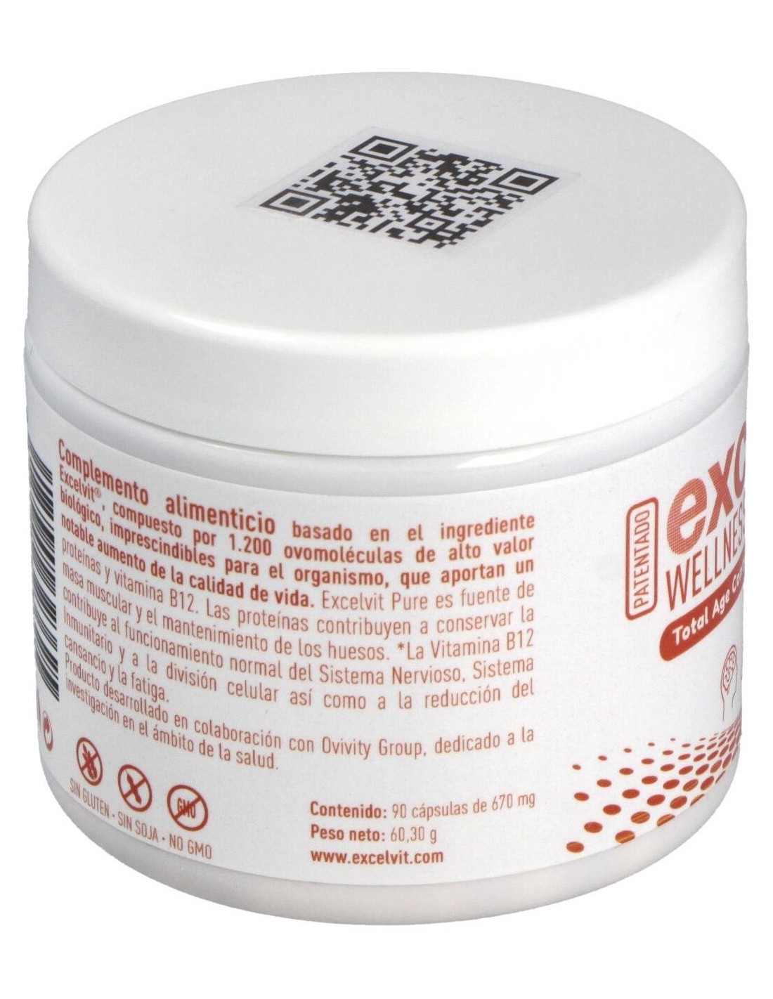 EXCELVITLa Excelvit Pure es un complemento alimenticio que ayuda a nuestro cuerpo a envejecer de forma saludable gracias al compuesto de su fórmula que contiene nuestro exclusivo EXCELVIT® junto con Vitamina B12 y proteínas, que ayudarán a tu cuerpo a mantenerse sano y a sentirse mejor. Modo de empleoEn etapa adulta tomar 3 cápsulas diarias.