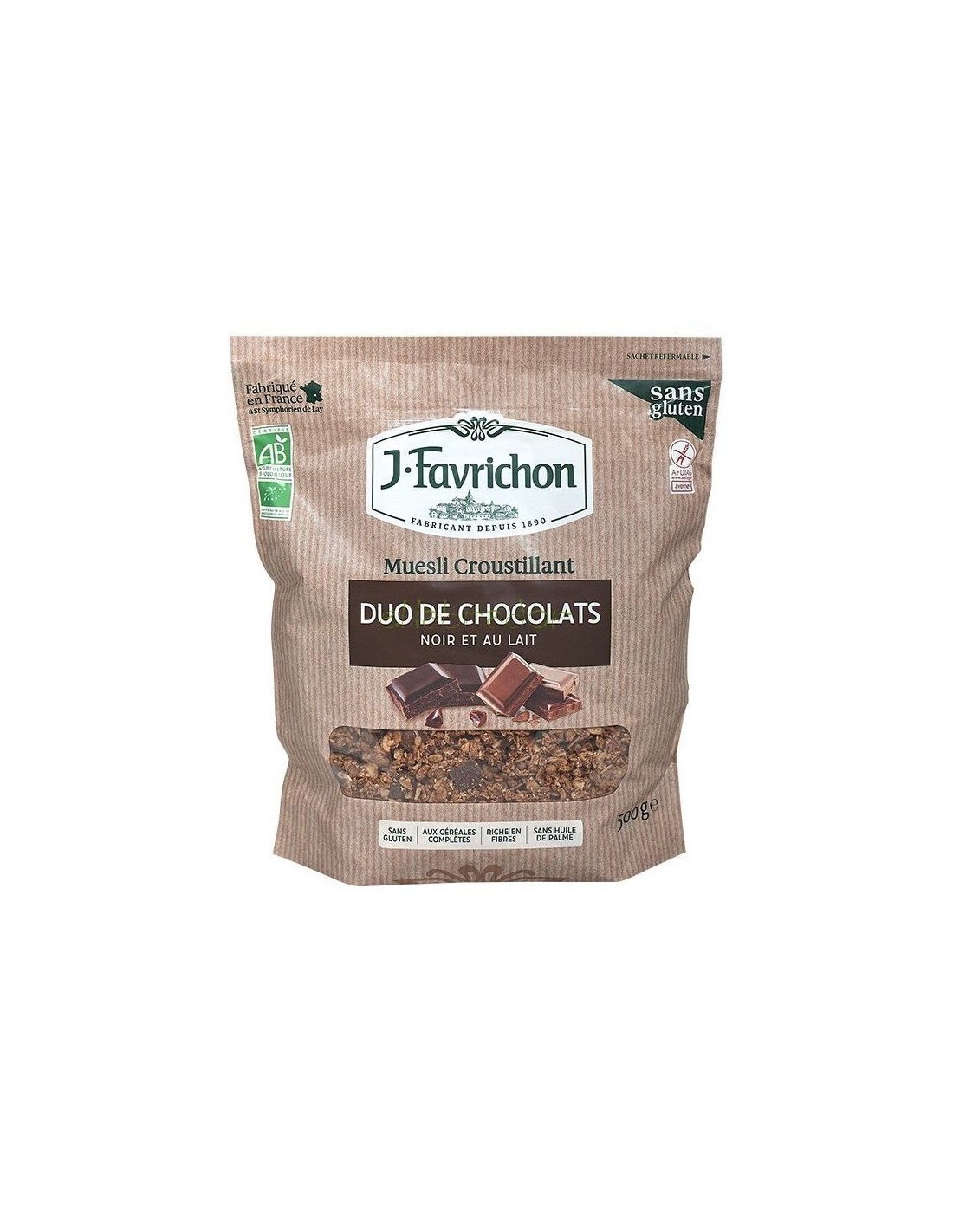 FAVRICHONIngredientes:Cereales* integrales 54,2% (copos de avena*, arroz*), trozos de chocolate* 15% [chocolate negro* 8,3% (pasta de cacao*, azúcar de caña*,