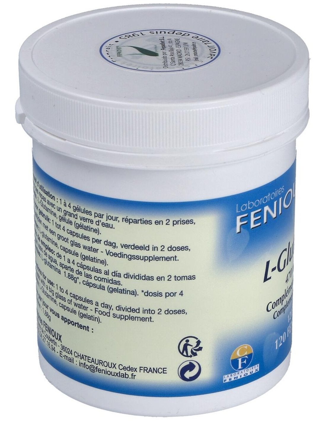L-Glutamina 120Cap. de Fenioux es un suplemento diseñado para personas que buscan apoyar la recuperación y el mantenimiento de su bienestar general. Es adecuado para quienes desean complementar su dieta con un aminoácido que participa en procesos clave del organismo.