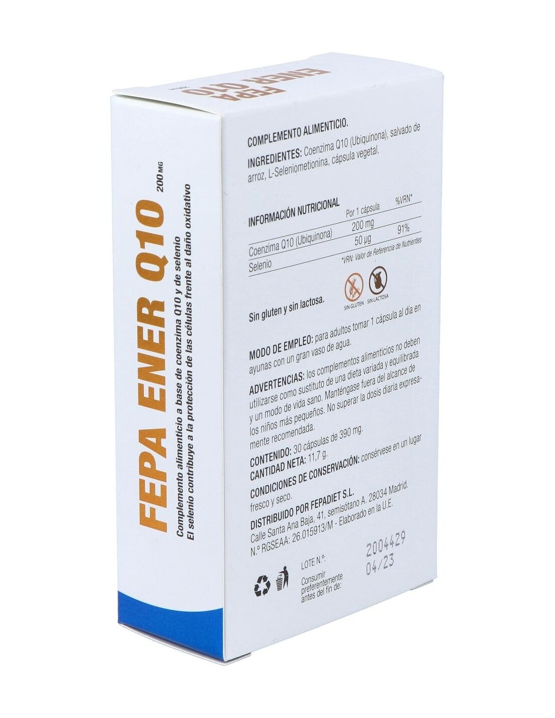 Fepa-Ener Q10 200Mg+Seleniometionina 30Cap. de Fepadiet es un suplemento diseñado para personas que buscan apoyar su bienestar general mediante ingredientes específicos. Está indicado para quienes desean complementar su dieta con coenzima Q10 y seleniometionina en una presentación cómoda y dosificada.