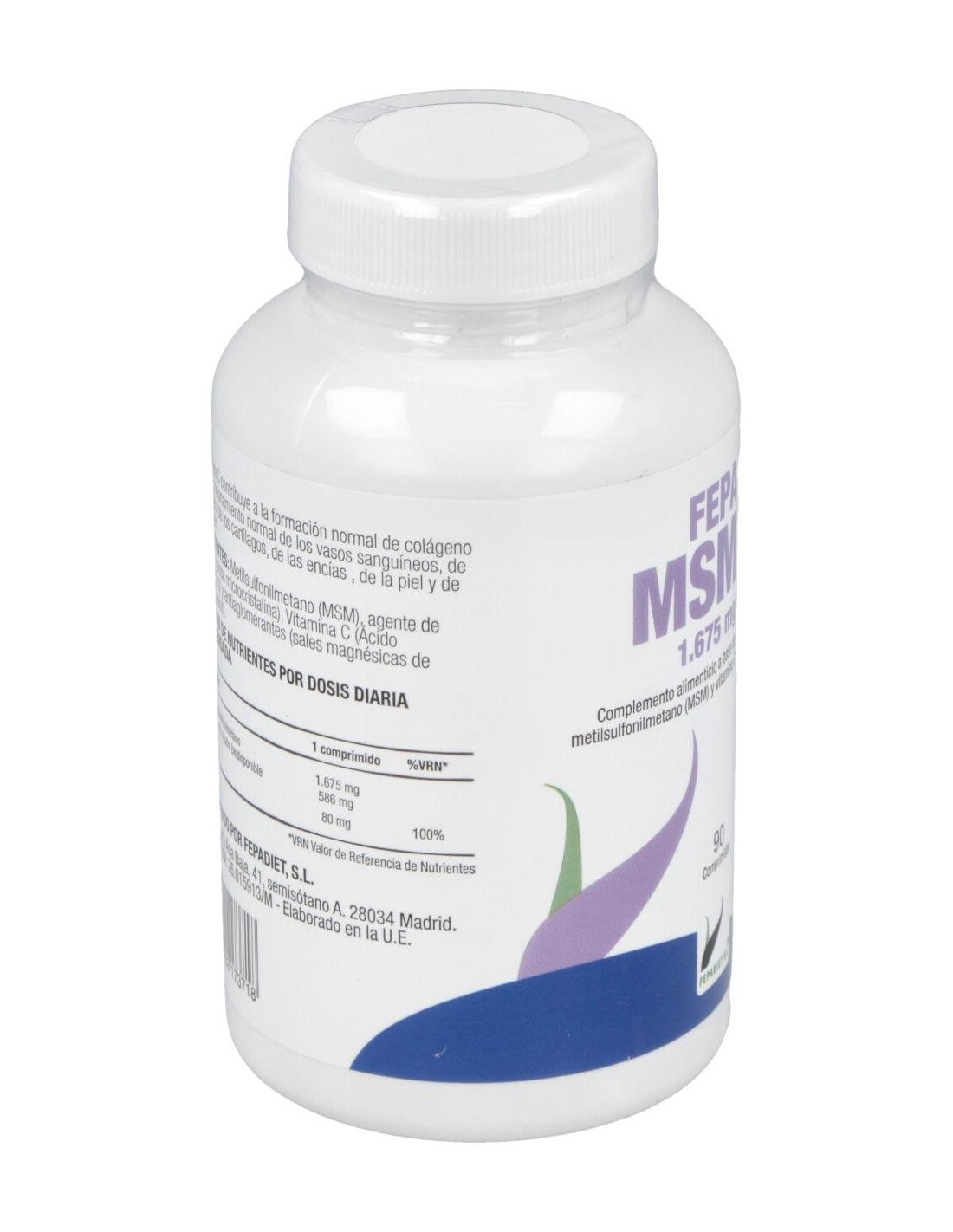 FEPADIETComplemento alimenticio a base de metilsulfonilmetano (MSM) y vitamina C. La vitamina C contribuye a la formación normal de colágeno para el funcionamiento normal de los vasos sanguíneos, de los huesos, de los cartílagos, de las encías , de la piel y de los dientes.