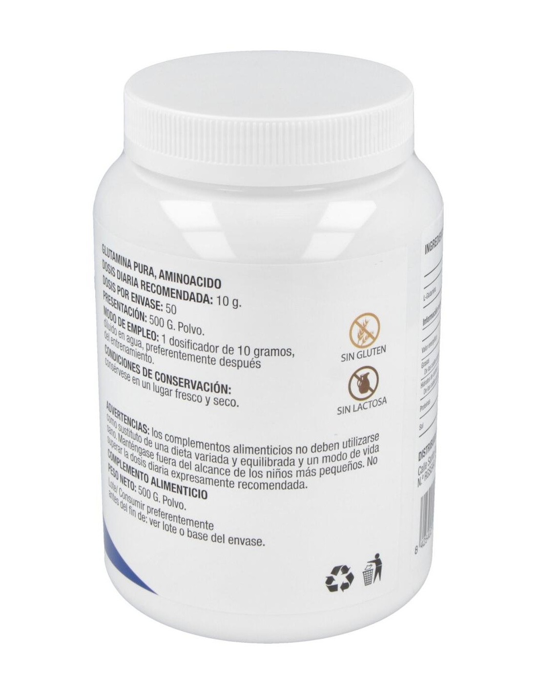 - Contiene glutamina en polvo con sabor neutro, facilitando su integración en diversas preparaciones sin alterar el sabor original.