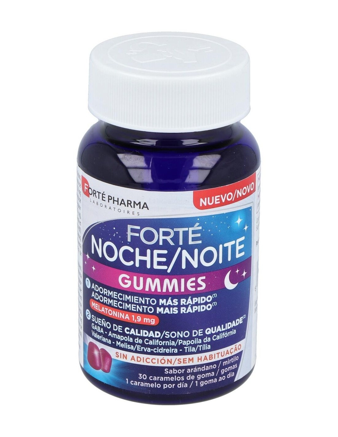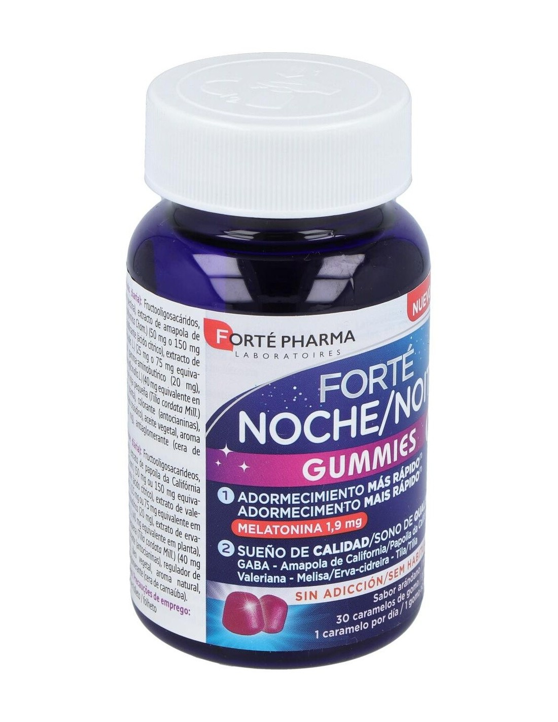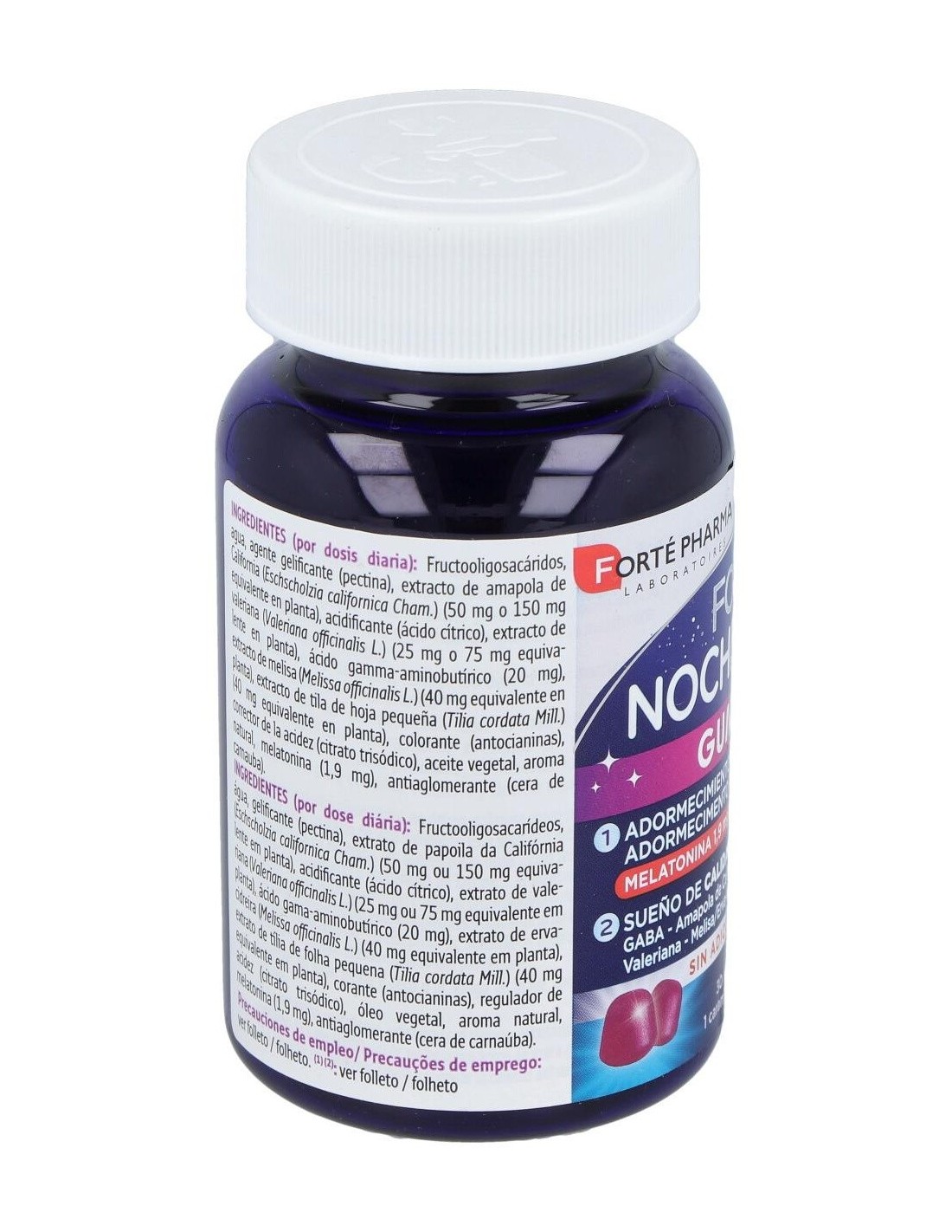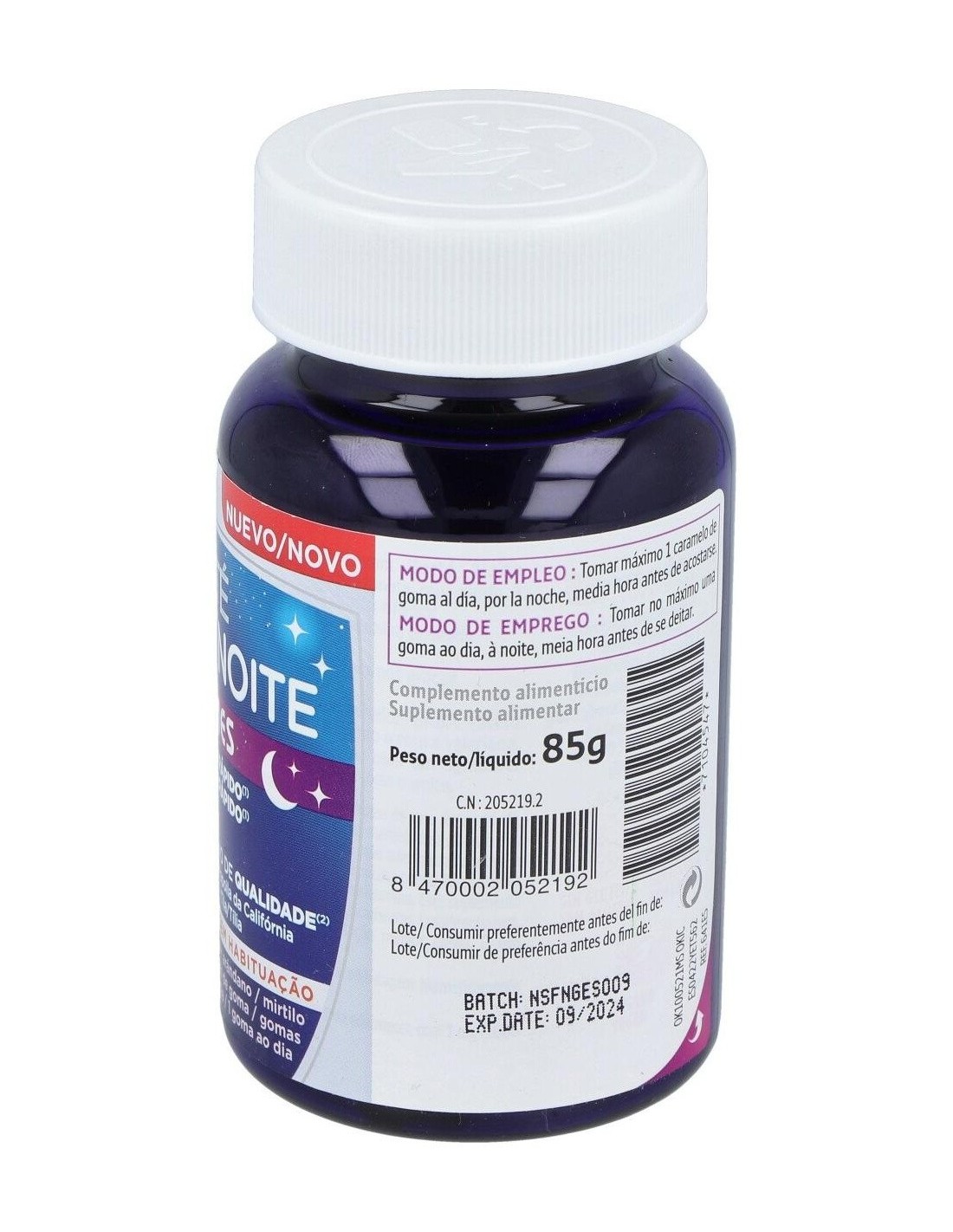Gominolas con sabor a mora a base de melatonina, que contribuye a recudir el tiempo necesario para conciliar el sueño, y plantas que ayudan a lograr un sueño de calidad.