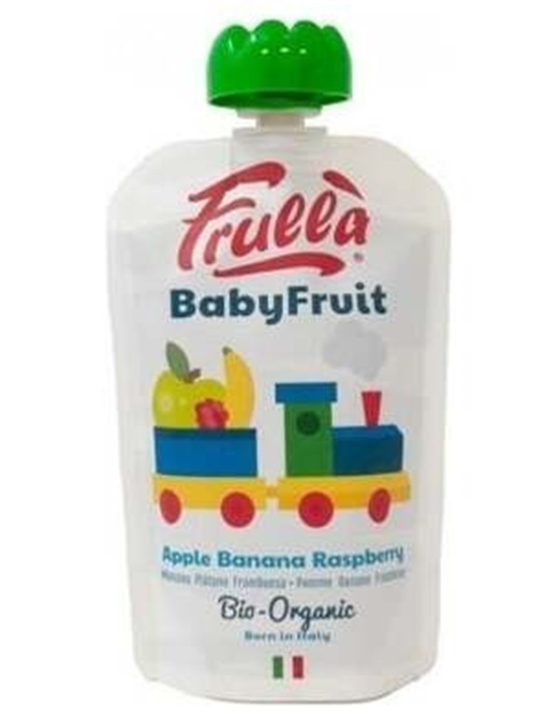 FRULLAPuré de manzana, plátano y frambuesa procedentes de cultivo ecológico sin conservantes, aditivos ni azúcar añadido. Presentado en un práctico envase con cierre para disfrutar en cualquier momento del día.