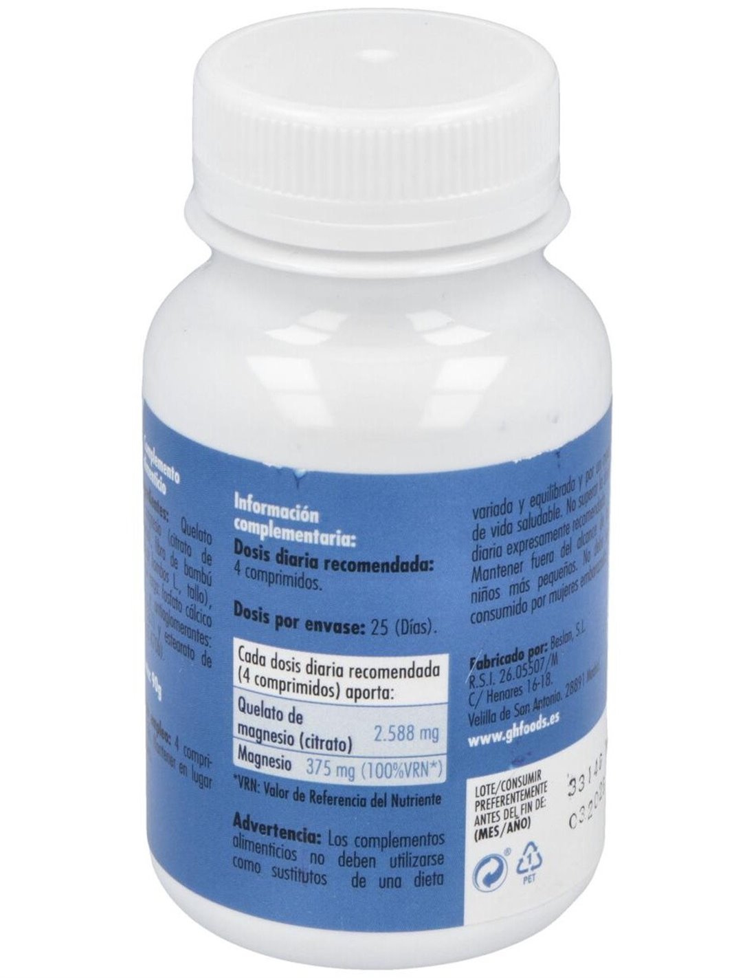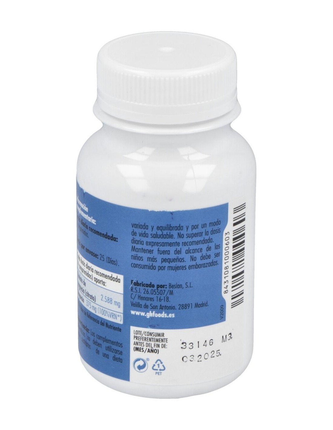 Quelato De Magnesio 100Comp. de Ghf ofrece una opción accesible para complementar la ingesta de magnesio, apoyando hábitos de consumo responsables y continuos.