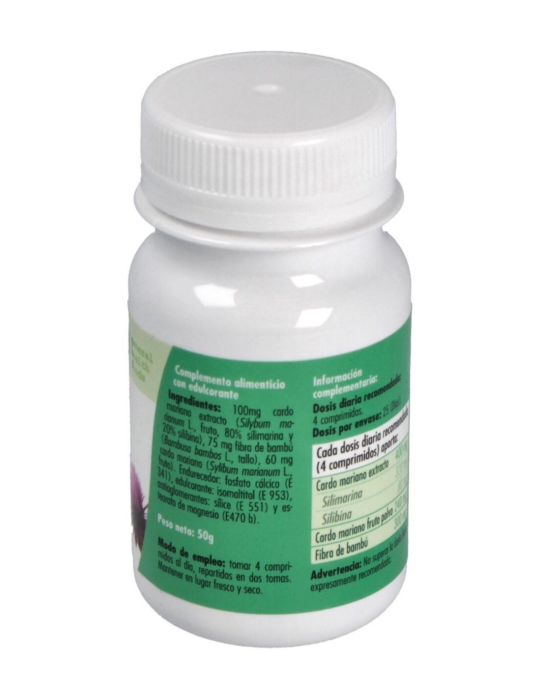 Este suplemento está compuesto principalmente por extracto de cardo mariano, conocido por su uso tradicional. Su formato en comprimidos facilita la dosificación y el transporte, adaptándose a diversas necesidades diarias. La presentación en cantidad de 100 unidades ofrece una opción conveniente para quienes buscan mantener una suplementación continua.