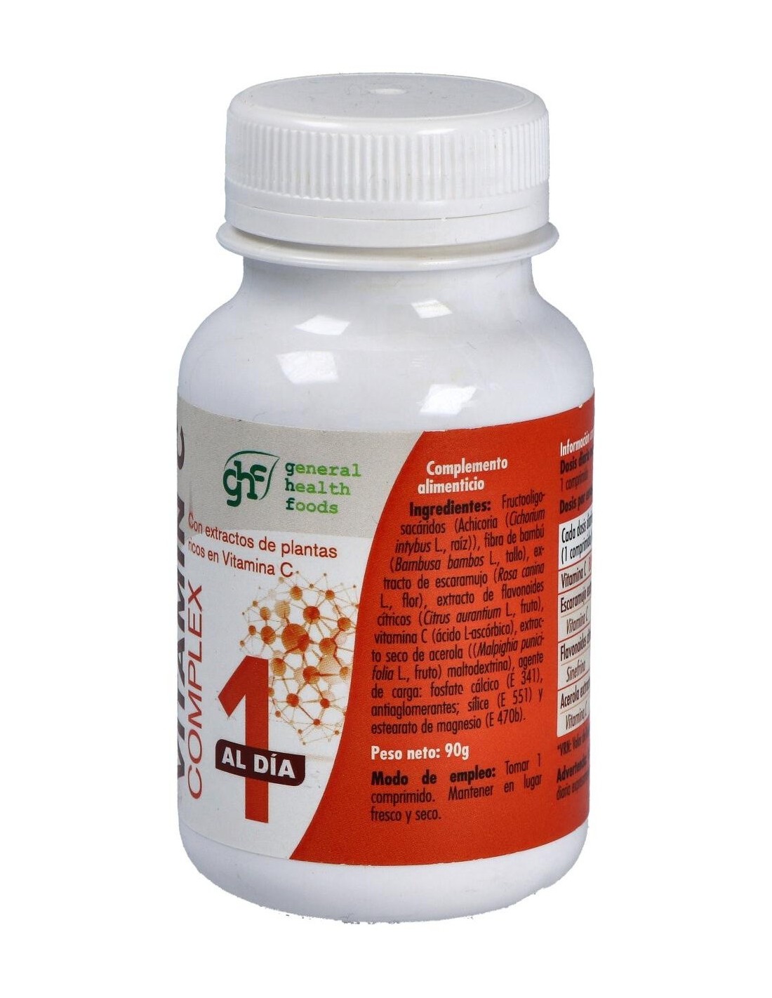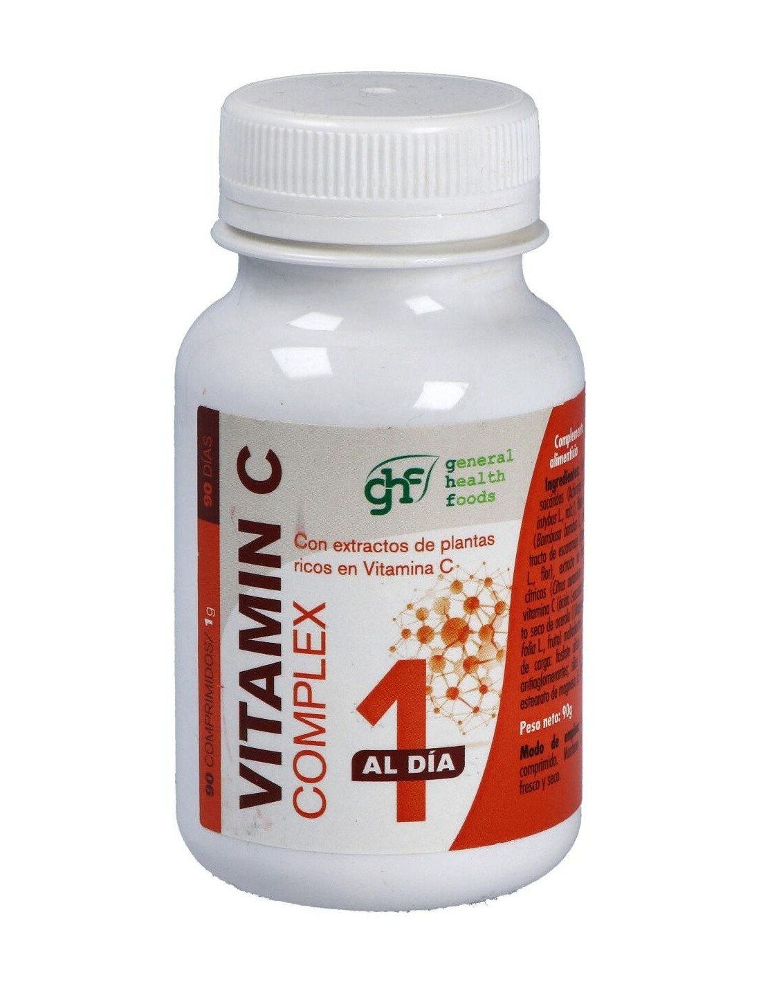 Vitamina C Complex 90Comp. de Ghf ofrece una opción práctica para complementar la ingesta de vitamina C, apoyando hábitos saludables de manera constante.