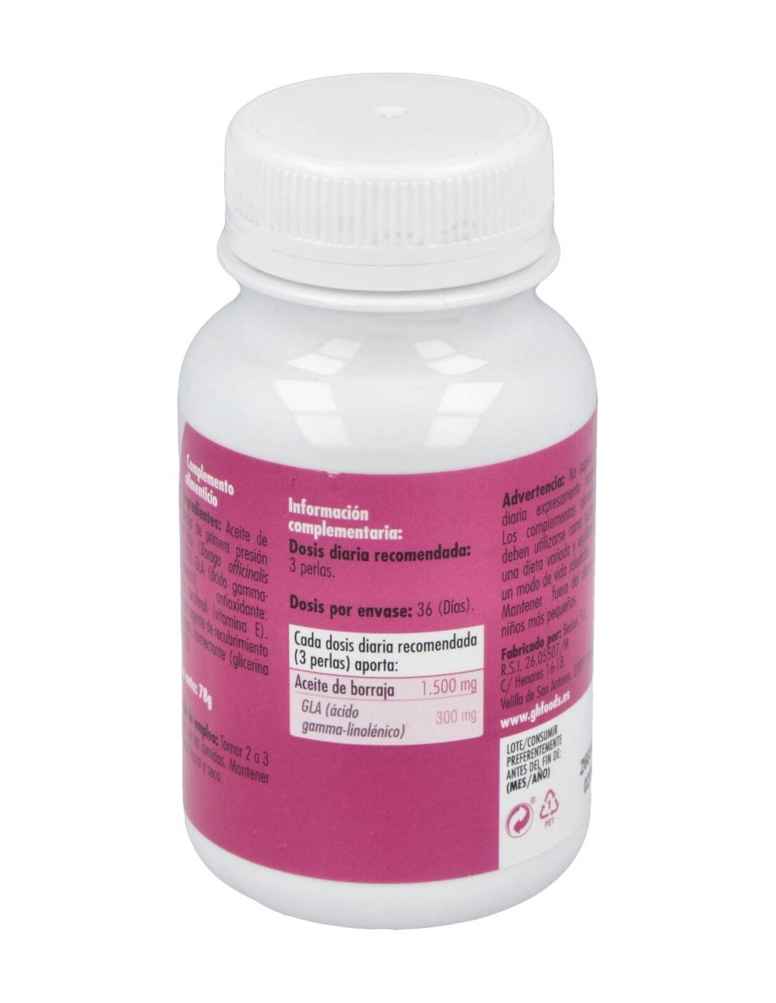 - Cada perla contiene 510 mg de extracto de borraja, contribuyendo a una ingesta constante y controlada.