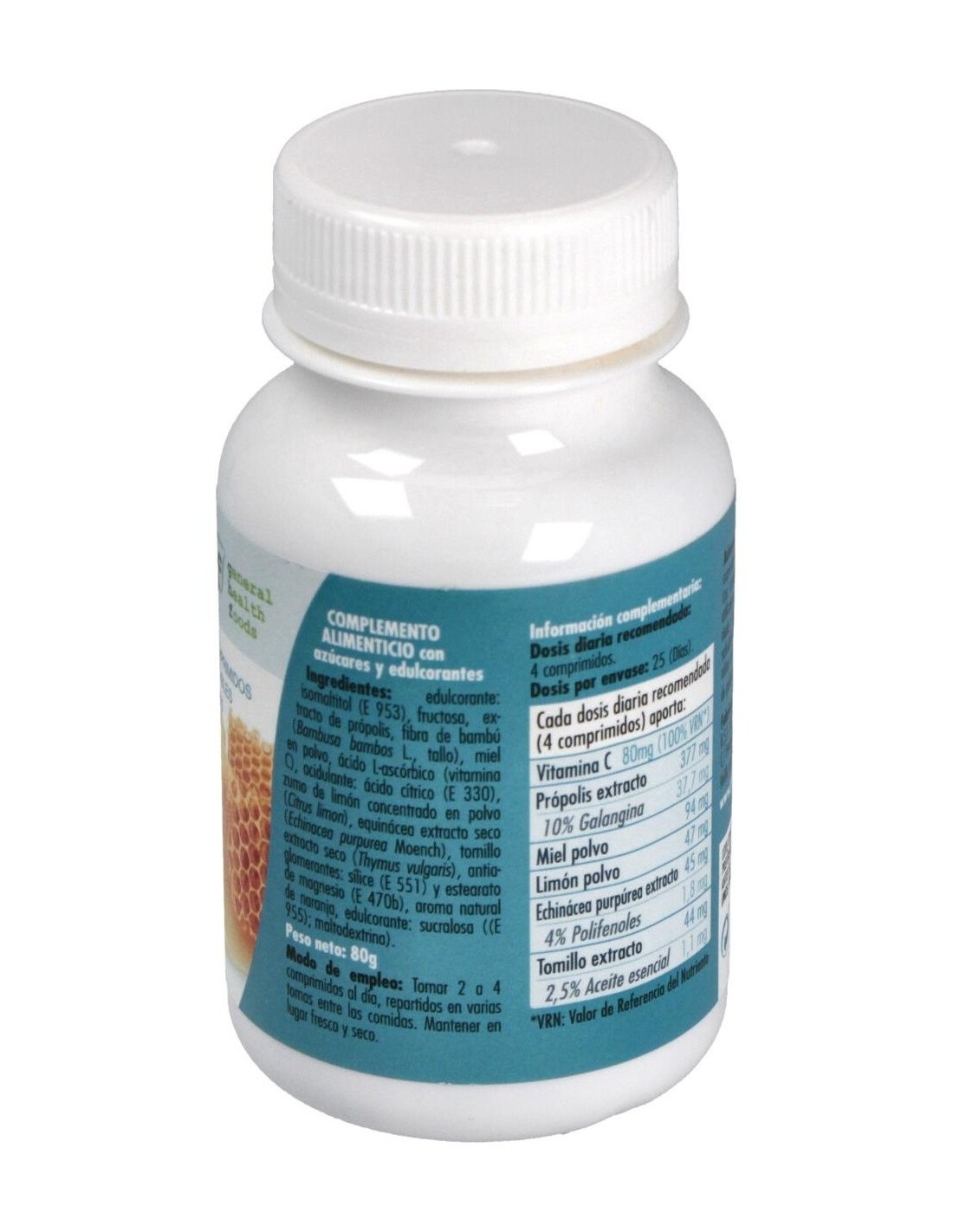 El producto está elaborado con ingredientes seleccionados para mantener la calidad del propóleo, presentándose en comprimidos masticables que facilitan su uso en cualquier momento del día. Su diseño compacto permite llevarlo fácilmente en el bolso o mochila.