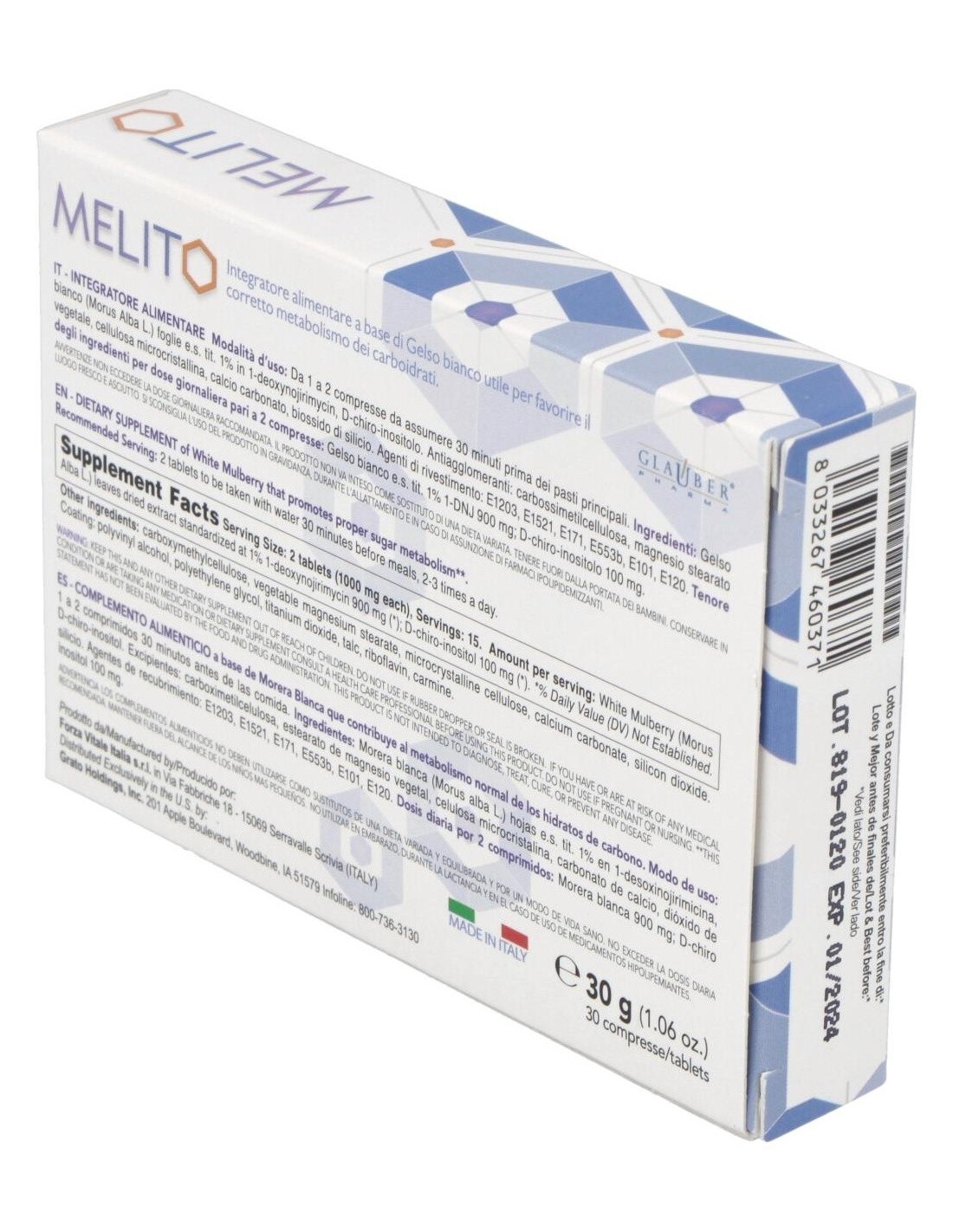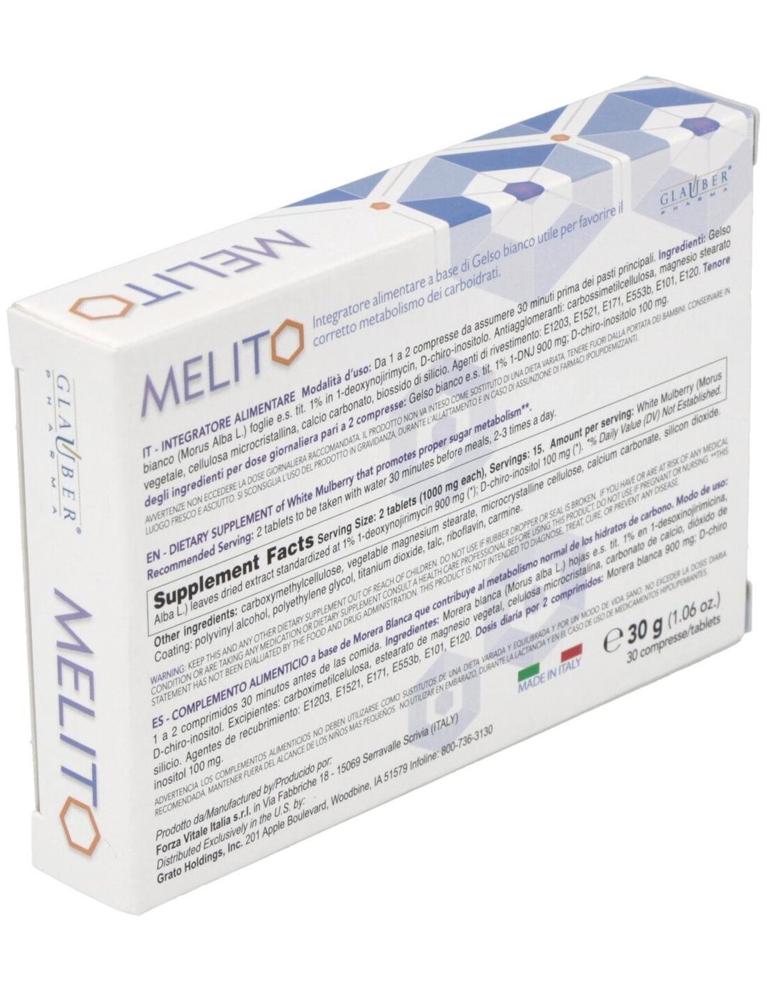 GLAUBER PHARMAMelito 30Comp. de Glauber Pharma es un suplemento dirigido a adultos que busca apoyar el bienestar general mediante una fórmula equilibrada y de fácil absorción.