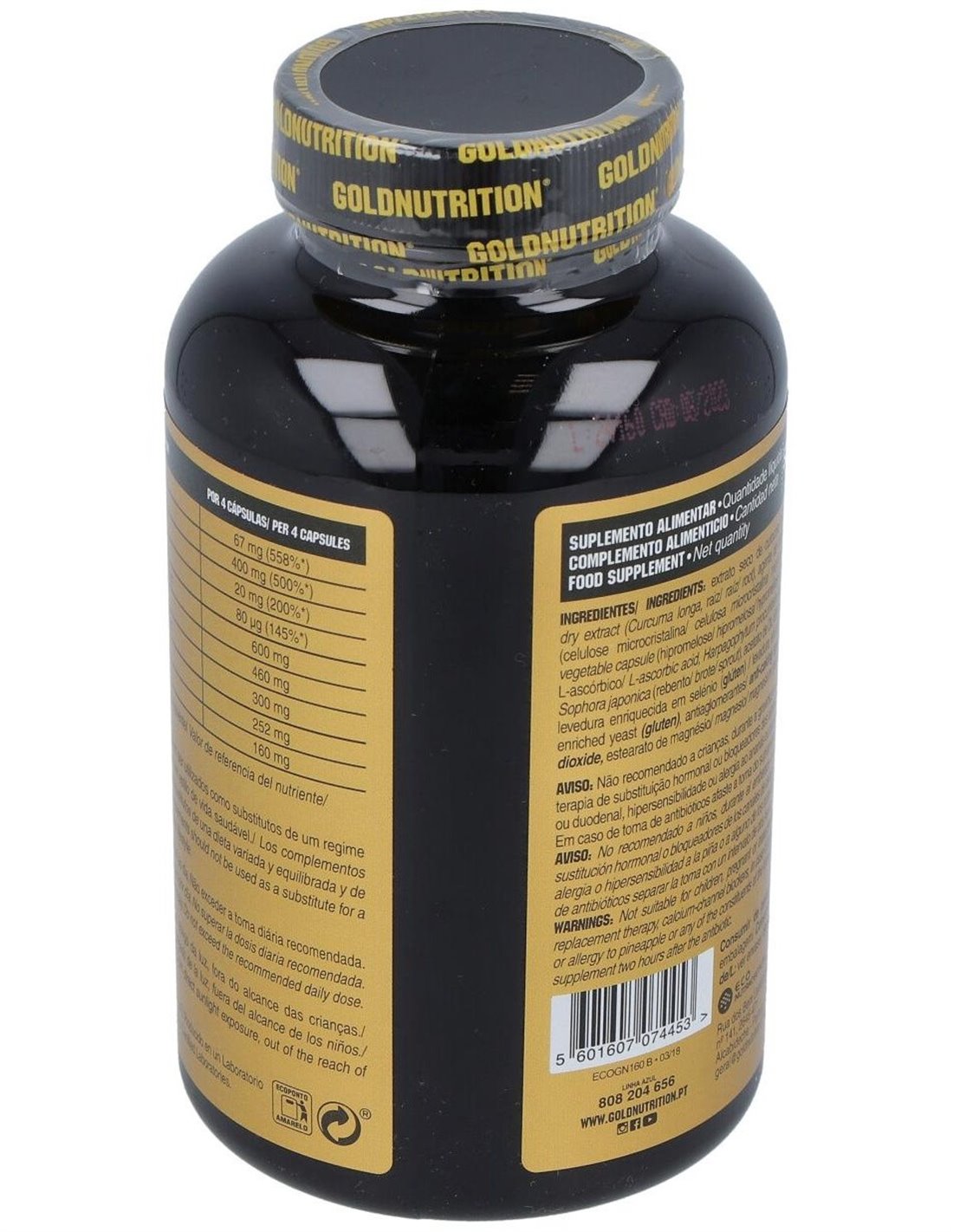Extracto seco de Cúrcuma - Curcuma longa - raíz (20,7%), Cápsula (gelatina transparente), Extracto de Boswelia serrata resina (15,8%), Ácido L-ascórbico, Extracto seco de Harpagofito Harpagophytum procumbers - raíz (10,3%), Bromelaína, Acetato de DL-alfa tocoferilo, Quercetina, Óxido de Zinc, Agente de carga (fosfato bibásico de calcio anhidro, celulosa microcristalina), Antiaglomerante (estearato de magnesio), Levadura enriquecida con selenio.