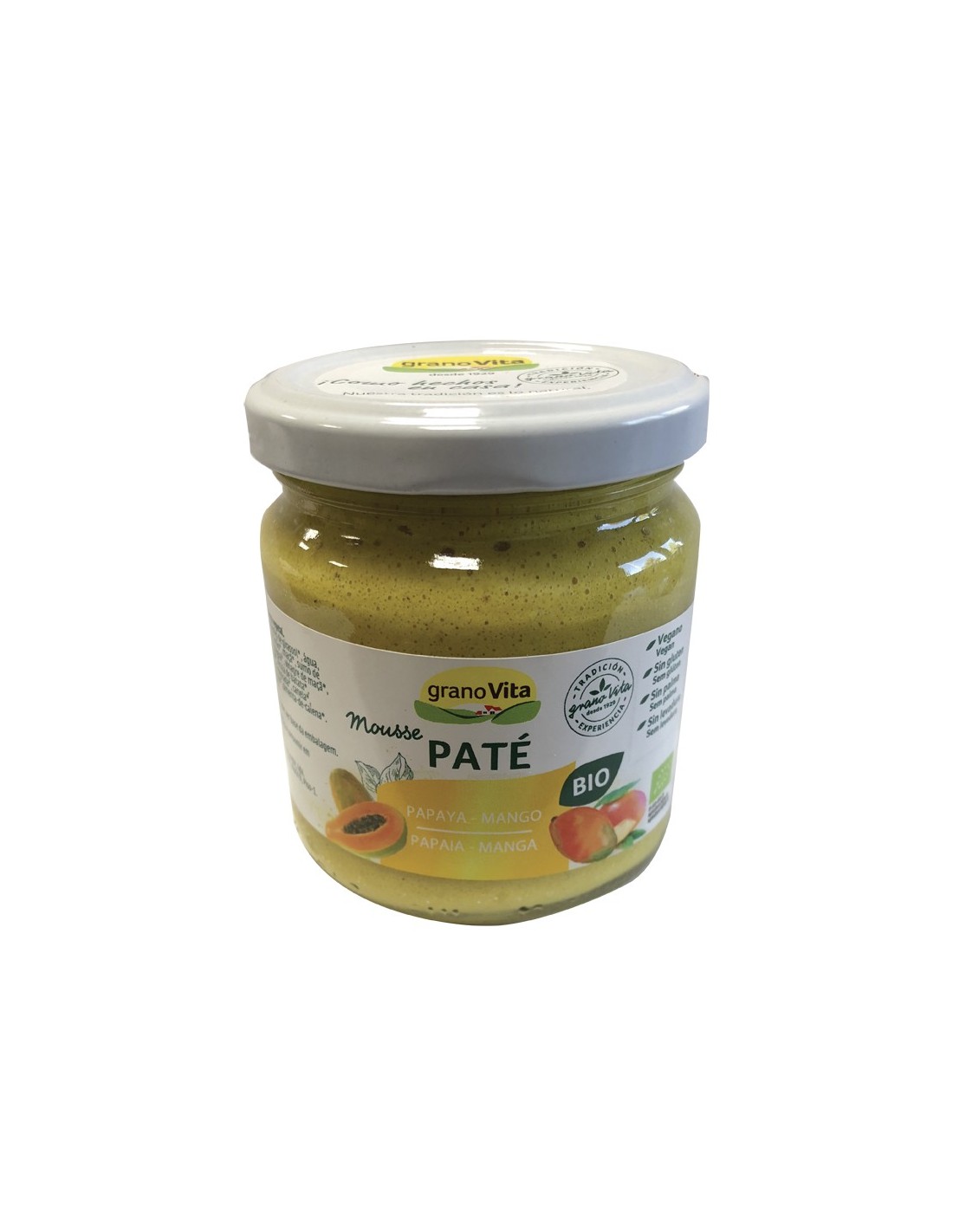 Descubre el increíble sabor y la textura suave del Paté Mousse De Papaya Y Mango Bio, 175 G de Granovita, un producto natural y saludable que transformará tus momentos de snack o aperitivo. Elaborado con ingredientes 100% orgánicos, este paté combina la dulzura tropical de la papaya y el mango para ofrecerte una experiencia única y refrescante.
