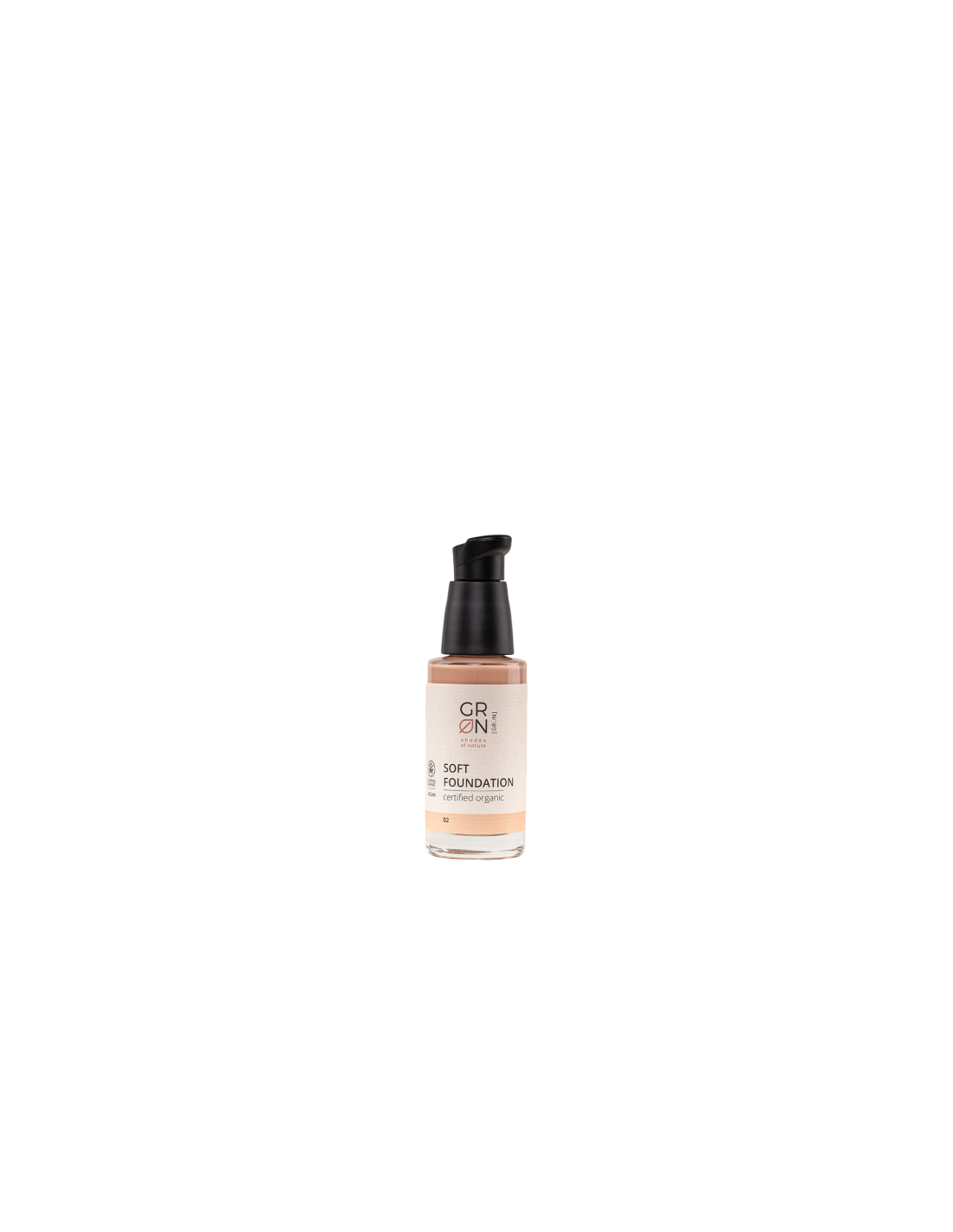 GRNBase de Maquillaje de acabado natural, con aceite nutritivo de aguacate, extracto calmante de manzanilla e hidrolato regenerador de cebada. Es un maquillaje de textura líquida y fresca con cobertura de ligera a media y larga duración. Adecuado para todo tipo de piel, incluso madura o grasa con tendencia acnéica. Se presenta en una botella de vidrio de alta calidad. Cosmética 100% ecológica certificada Cosmos Organic.