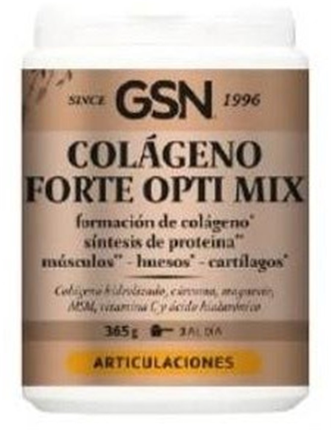 Colágeno Forte Opti Mix 364 G de GSN es un suplemento diseñado para personas que buscan apoyar la salud de su piel, articulaciones y tejidos conectivos mediante una fórmula equilibrada. Es adecuado para quienes desean complementar su dieta con colágeno hidrolizado y otros ingredientes seleccionados para favorecer el bienestar general.