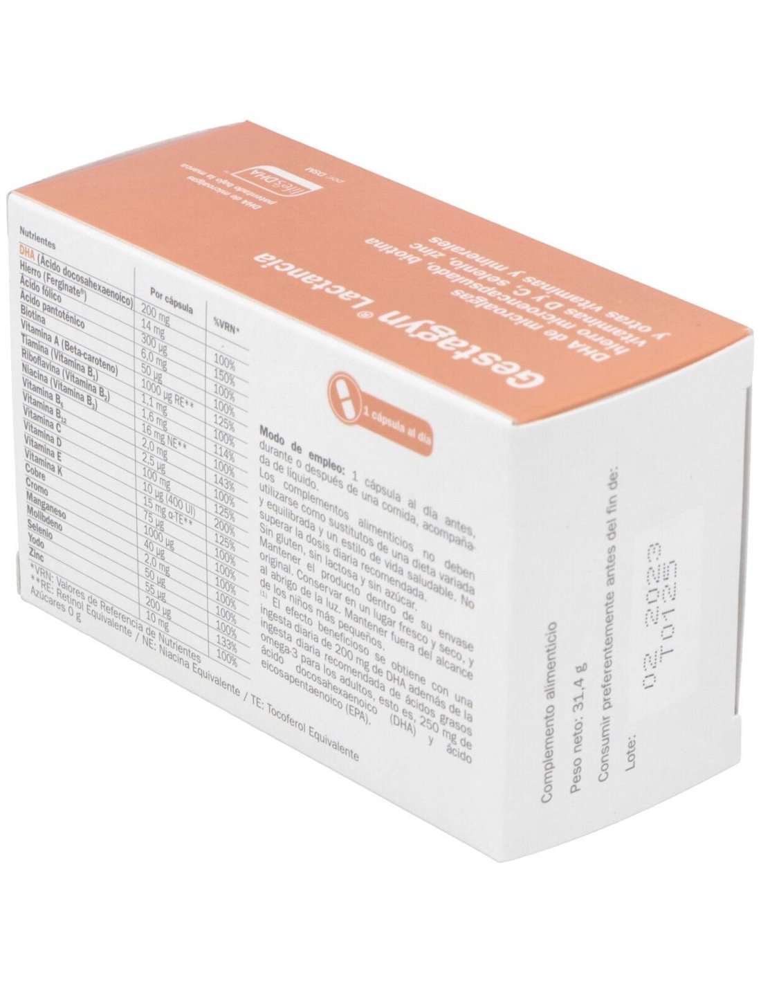 GYNEA GESTAGYNComplemento alimenticio específico para la lactancia con DHA de microalgas, ácido fólico, yodo, betacaroteno, y otras vitaminas y minerales adecuados para la etapa de la lactancia. Complemento alimenticio específico para la lactancia con DHA de microalgas, ácido fólico, yodo, betacaroteno, y otras vitaminas y minerales adecuados para la etapa de la lactancia.