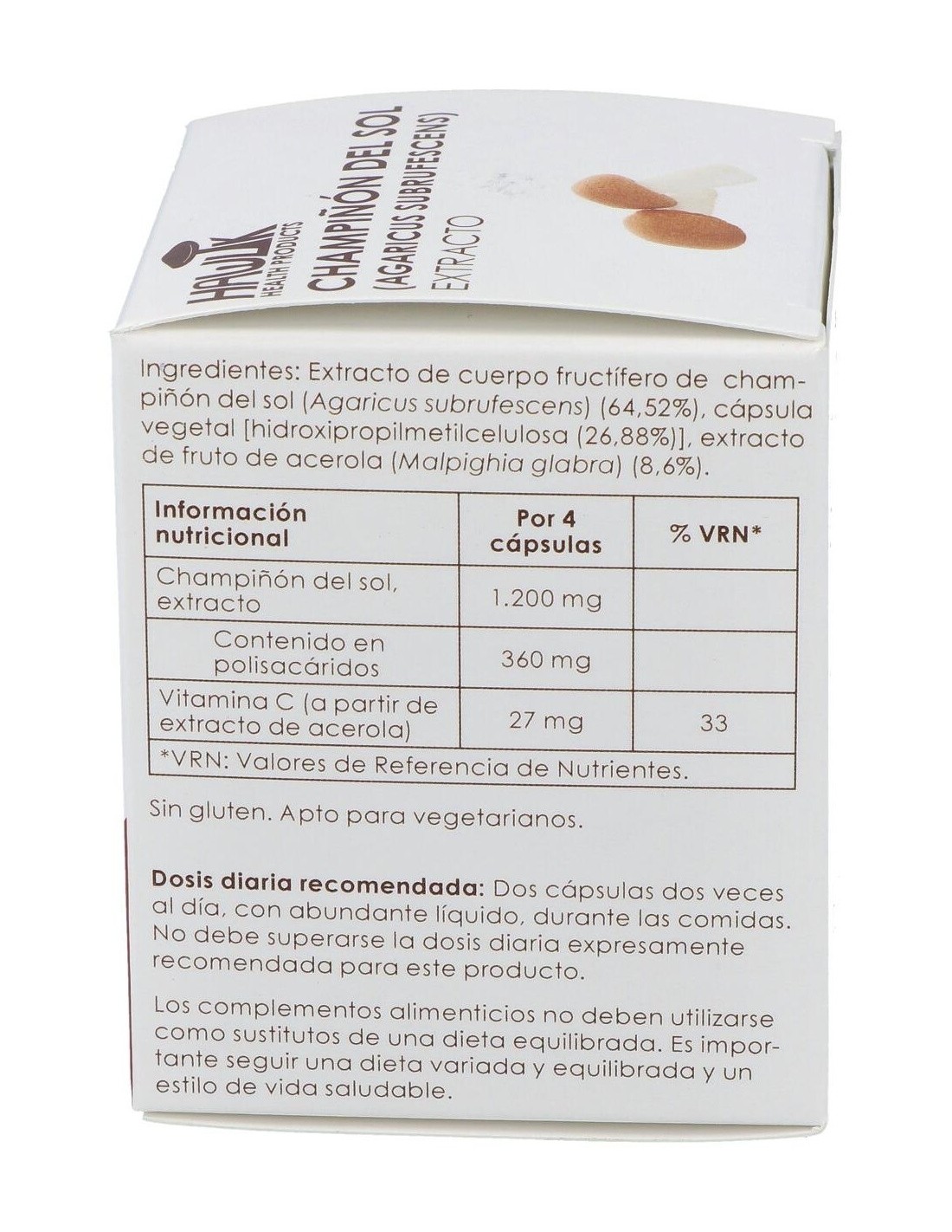 1.200 mg de extracto de champiñón del sol (360 mg de polisacáridos).