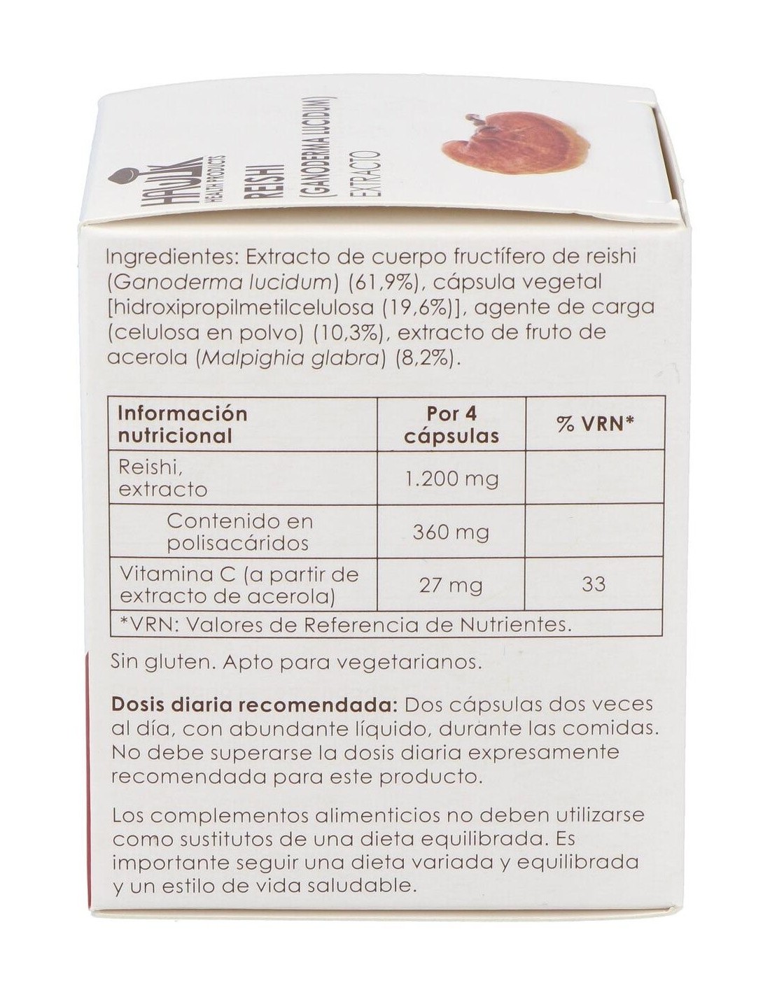 1.200 mg de extracto de Reishi (360 mg de polisacáridos).