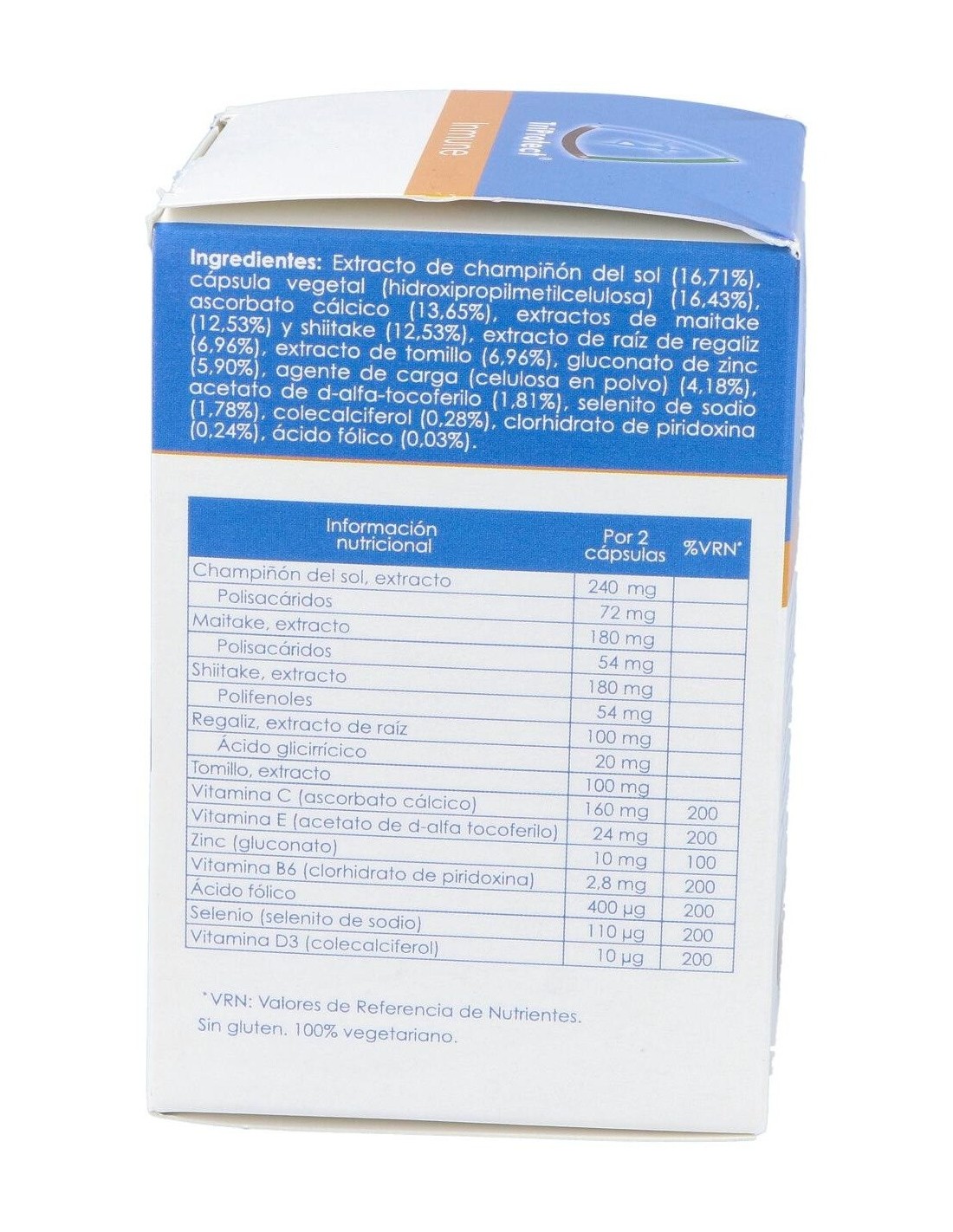 180 mg de extracto de Shiitake (Lentinula edodes)(54 mg de polisacáridos).