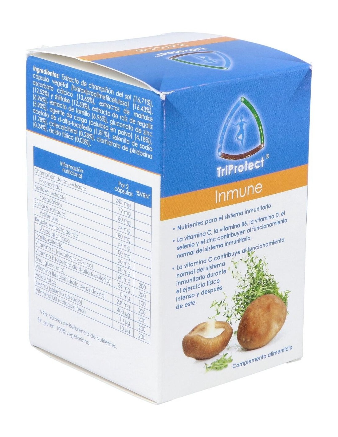 Inmune de Hawlik s un complemento alimenticio que proporciona al sistema de defensa del organismo los nutrientes esenciales, seleccionados especificamente para apoyar las defensas inmunológicas del cuerpo y contribuir al bienestar general. Inmune es una formulación innovadora formulada especificamente para las necesidades de nuestro sistema inmunológico, indicado en casos de inmunodepresión, infecciones frecuentes, prevención de infecciones e infecciones activas.Combina los extraordinarios beneficios de los hongos Champiñón del sol (Agaricus blazei), Maitake (Grifola frondosa) y Shiitake (Lentinula edodes), con extractos de hoja de tomillo (Thymus vulgaris) y raíz de regaliz (Glycyrrhiza glabra), junto con el aporte de otros nutrientes esenciales como las vitaminas B6, C, E, D y ácido fólico, así como los minerales selenio y zinc.Propiedades: