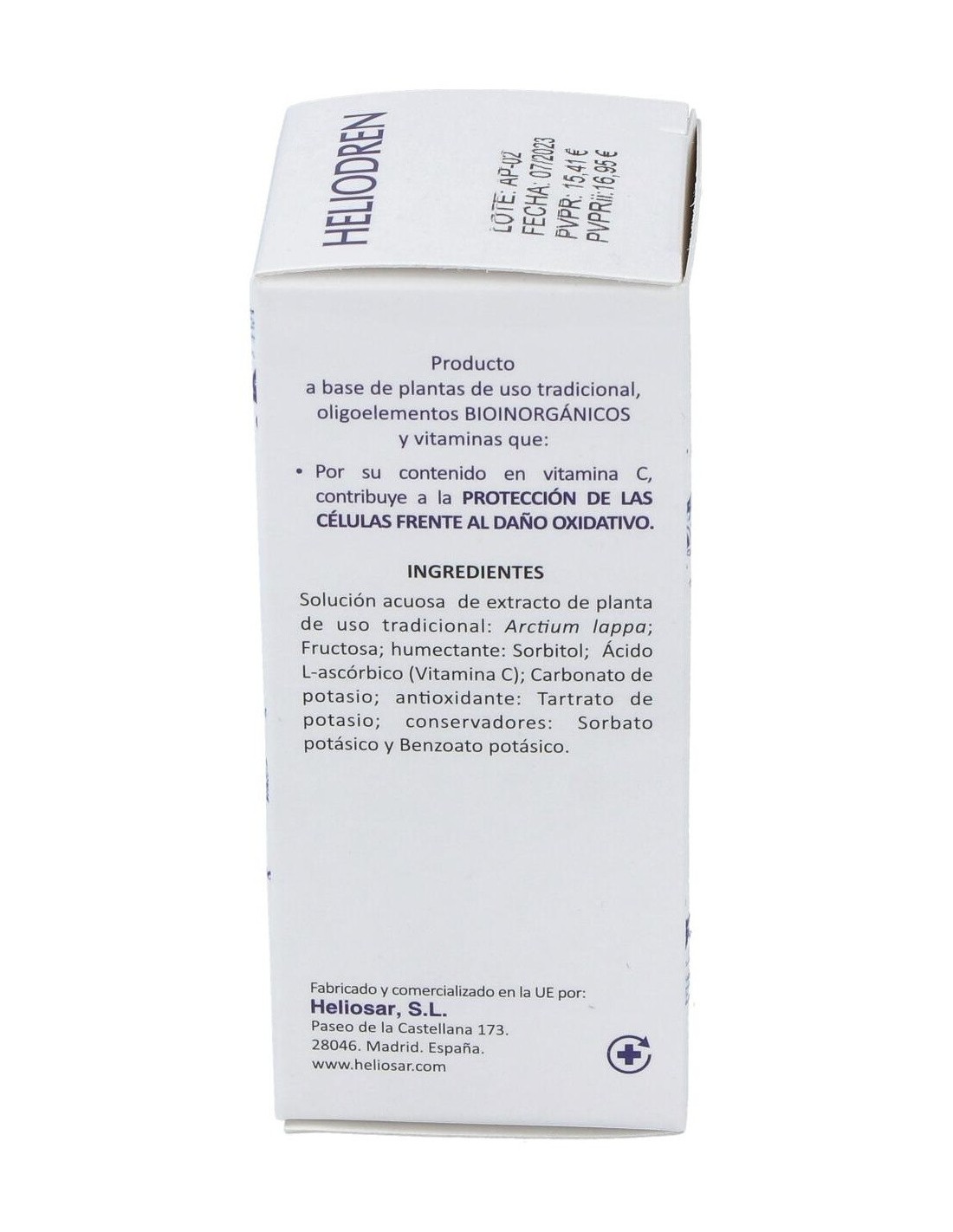 HELIOSARComplemento alimenticio en formato líquido con práctico dosificador de gotero, elaborado a base de extractos de arctium lappa y vitamina C, especialmente desarrollado para favorecer la hidratación del organismo y facilitar la disolución de cálculos y arenillas.La vitamina C, además, contribuye a la protección de las células frente al daño oxidativo.