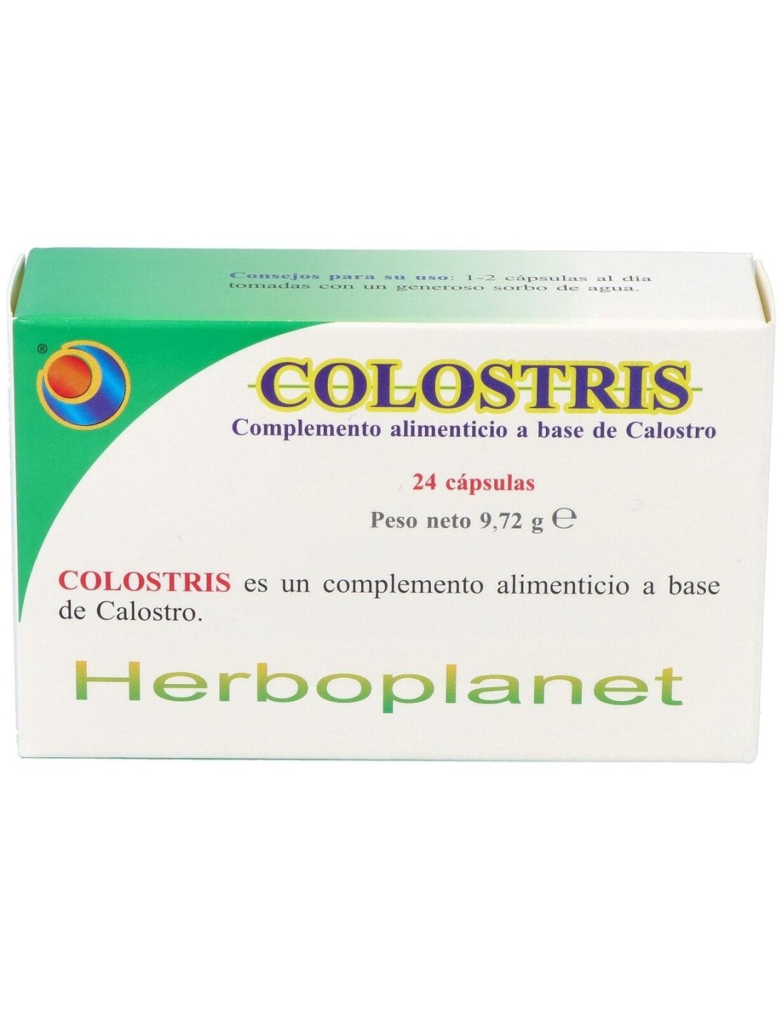 El calostro bovino es una mezcla producida por la glándula mamaria de las vacas en las primeras 48-72 horas del nacimiento de la cría. Debido a su composición única, el calostro bovino puede proporcionar una serie de beneficios para la salud, incluyendo la mejora de la función inmunológica gracias a su contenido de inmunoglobulinas (IgA, IgG e IgM) y sustancias con acción inmunoestimuladora (PRP y citocinas), así como moléculas con acción antimicrobiana y otras sustancias interesantes como la poliamina y la molécula GLP1 y GLP2.Colostris de Herboplanet es un complemento alimenticio que mejora la función inmunitaria. Regulador del sistema inmunológico. Síndrome del intestino y del estómago permeable.Ingredientes 2 cápsulas:Calostro bovino (contiene leche y derivados de la leche) 600 mg. Gelatina alimentaria. Agentes antiaglomerantes: sales de magnesio de los ácidos grasos.Modo de empleo:Tomar 1 cápsula 2 veces al día, tomada con abundante agua.Presentación:Envase de 24 cápsulas.