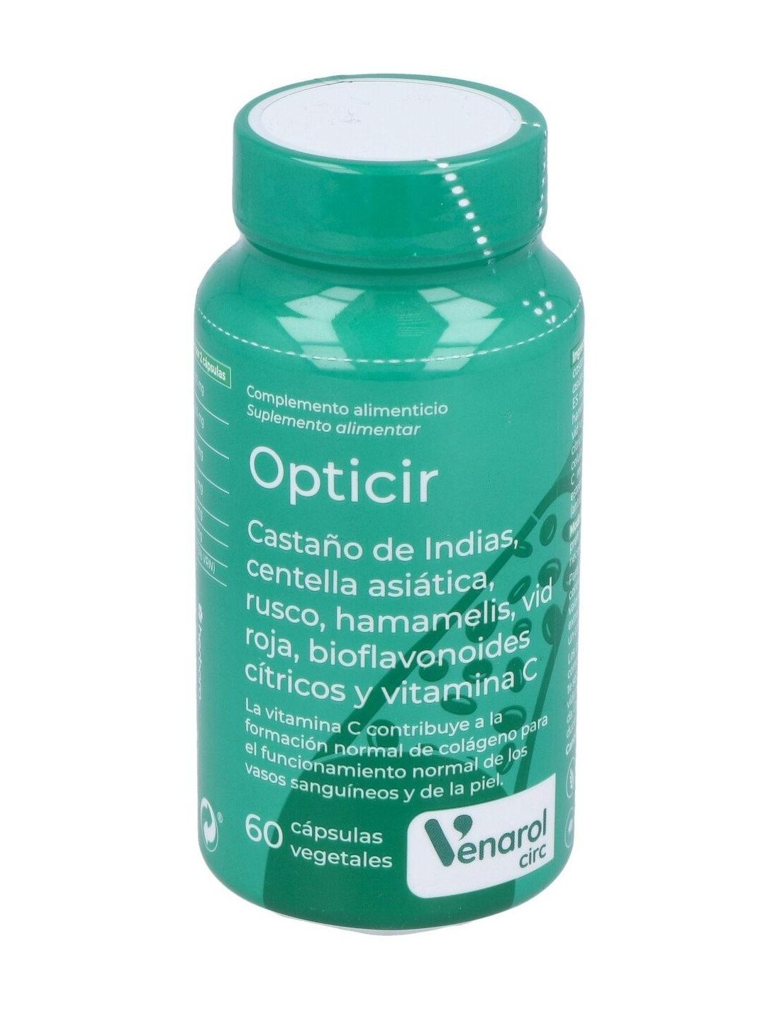 Ma´s de la mitad de la poblacio´n adulta padece insuficiencia venosa, una afeccio´n en la que las venas tienen dificultades para retornar la sangre de las piernas al corazo´n.Opticir facilita el correcto funcionamiento del sistema circulatorio, siendo un tratamiento preventivo y de mejora para problemas circulatorios. Combina en su fo´rmula castan~o de Indias, centella asia´tica, rusco, hamamelis y vid roja, junto con los bioflavonoides ci´tricos y la vitamina C.Con efecto analge´sico y antiinflamatorio, actu´a sobre los vasos sangui´neos, evitando la mala circulacio´n de la sangre y el efecto de piernas cansadas y pesadas.Indicaciones: