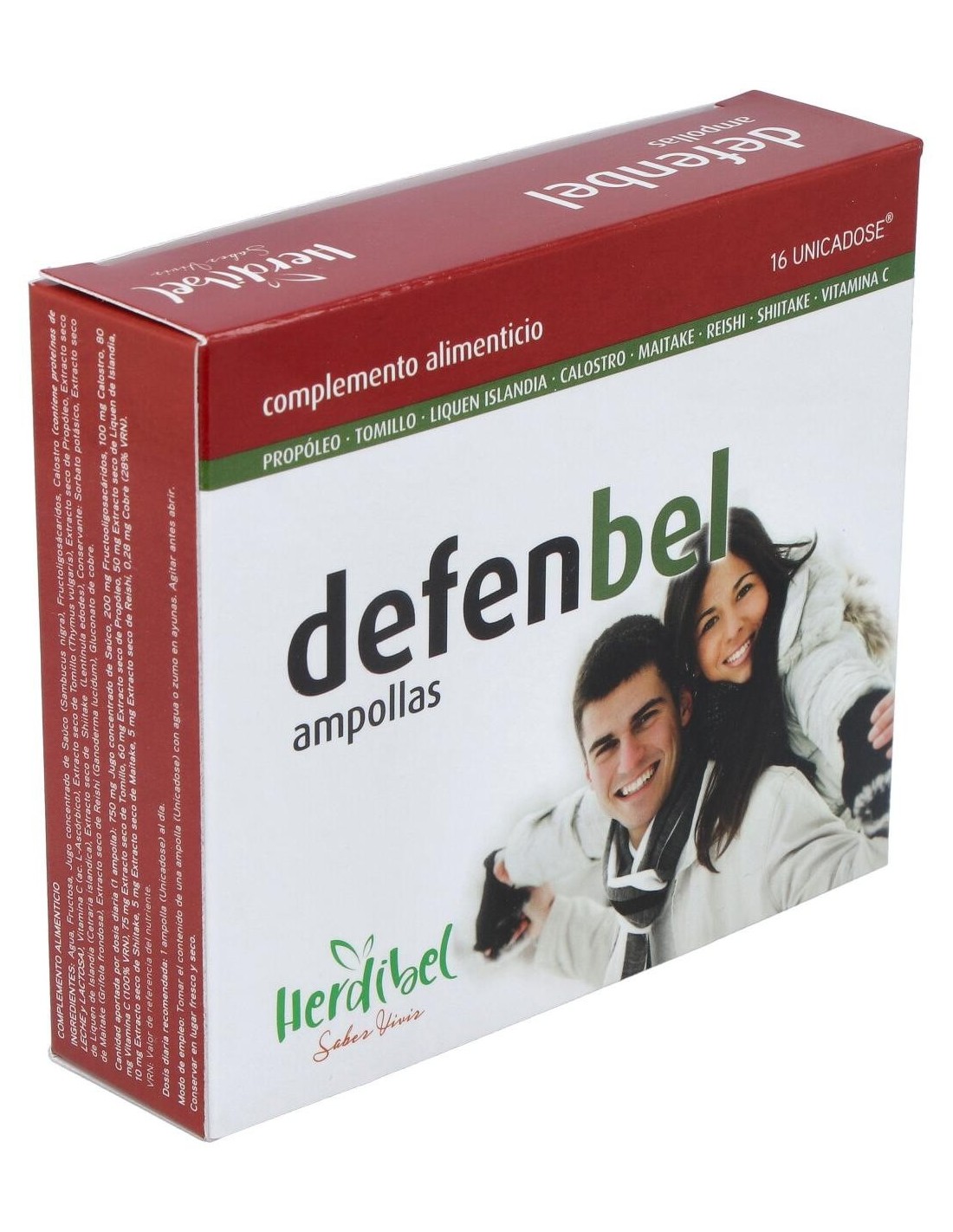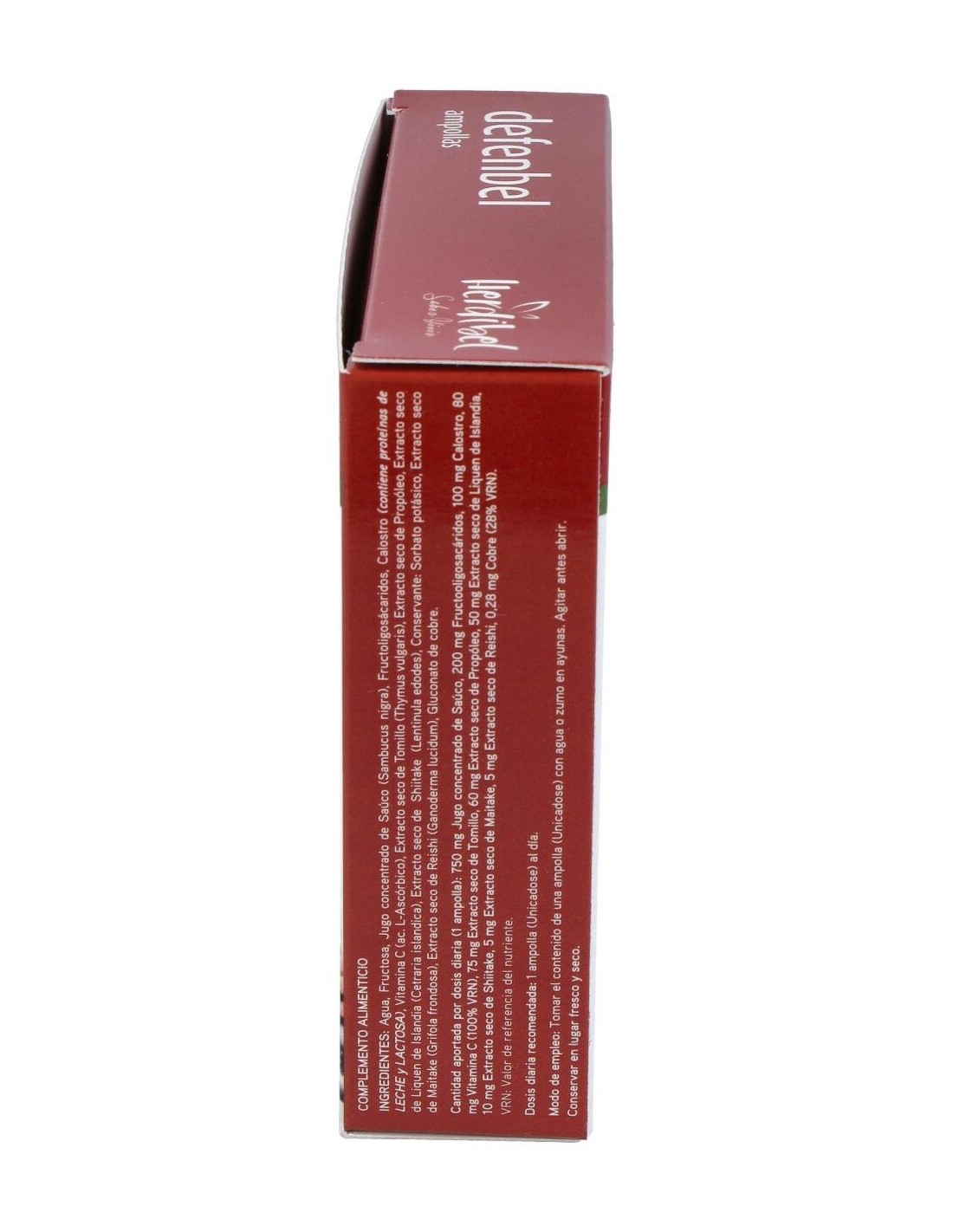 Concentrado de Saúco Rojo 750 mg, Extracto de Própolis 300 mg, Extracto de Tomillo 300 mg, Extracto de Liquen de Islandia 200 mg, Fructoligosacáridos 200 mg, Calostro 100 mg, Extracto de Maitake 50 mg, Extracto de Reishi 50 mg, Extracto de Shiitake 50 mg, Vitamina C 80 mg, Gluconato de Cobre 2 mg.