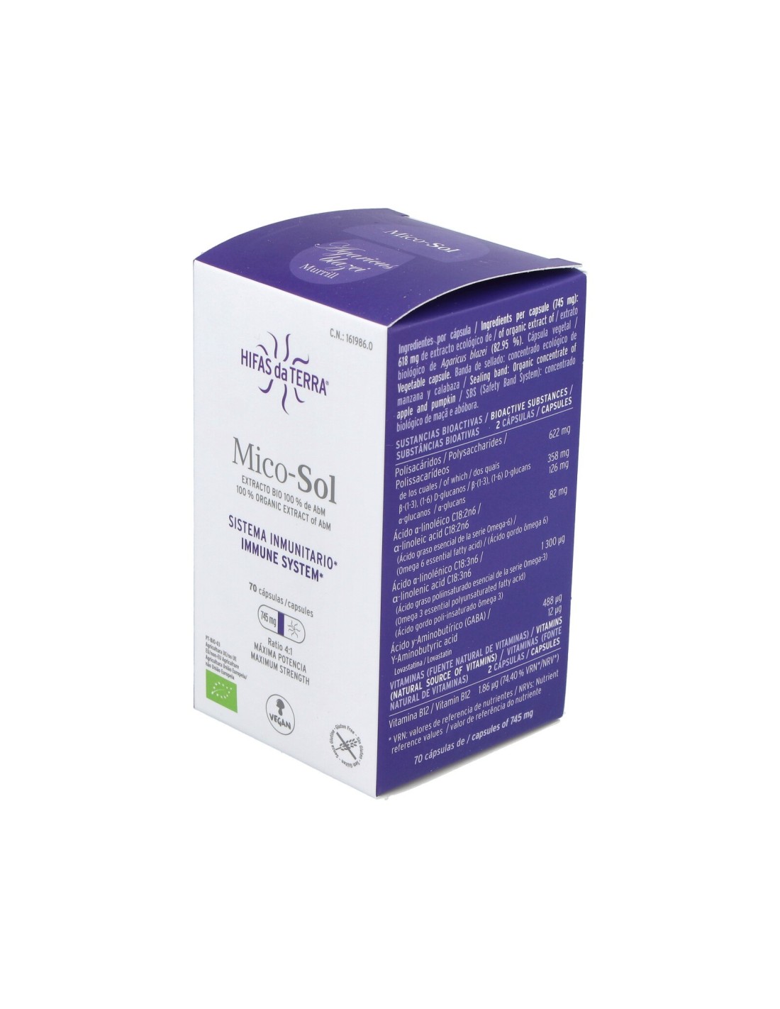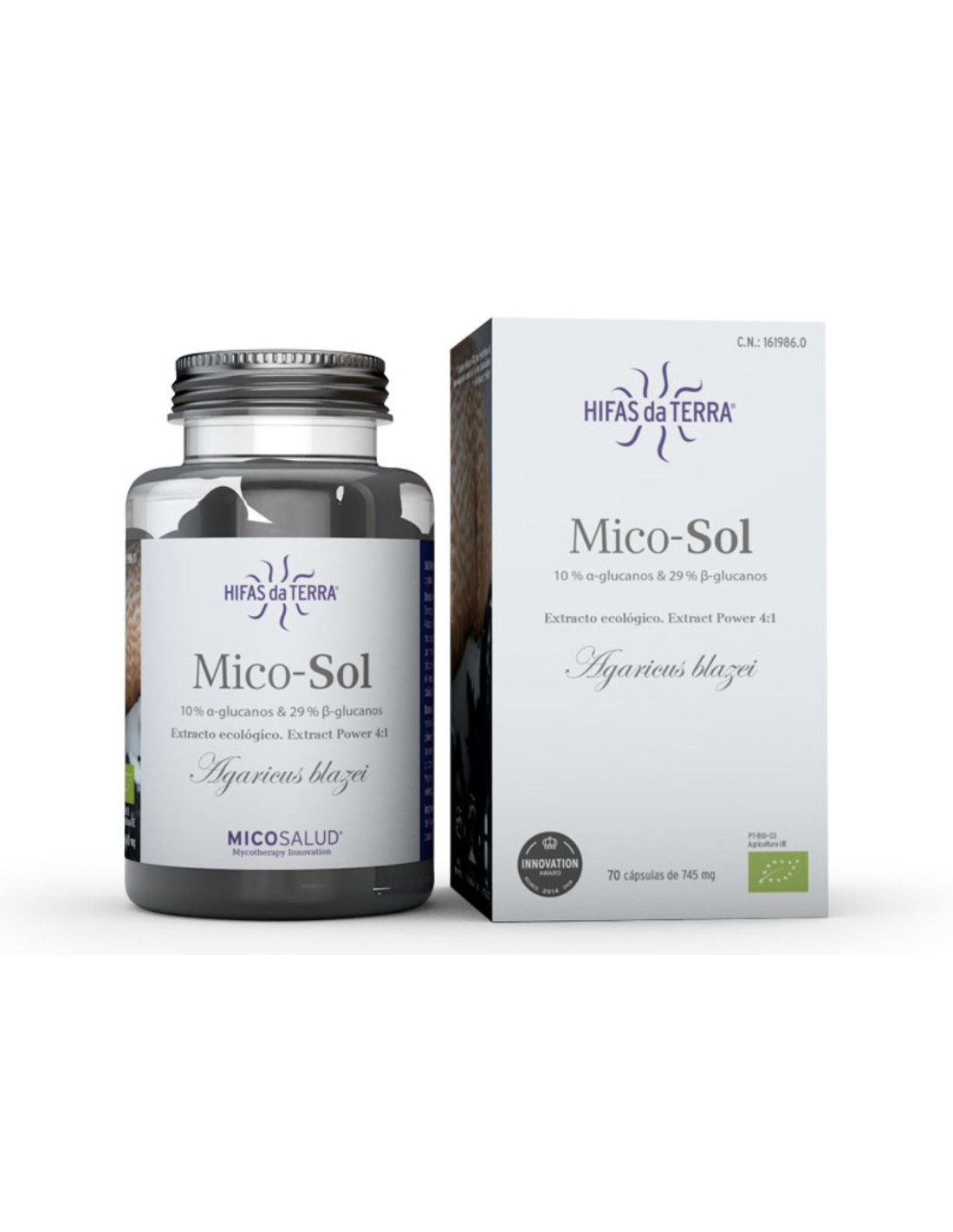 Composición por cápsula:618 mg de extracto puro de champiñon del sol (11,9% en beta-glucanos).Modo de empleo:Tomar 1 ó 2 cápsulas al día en ayunas.Presentación:Bote de 70 cápsulas.