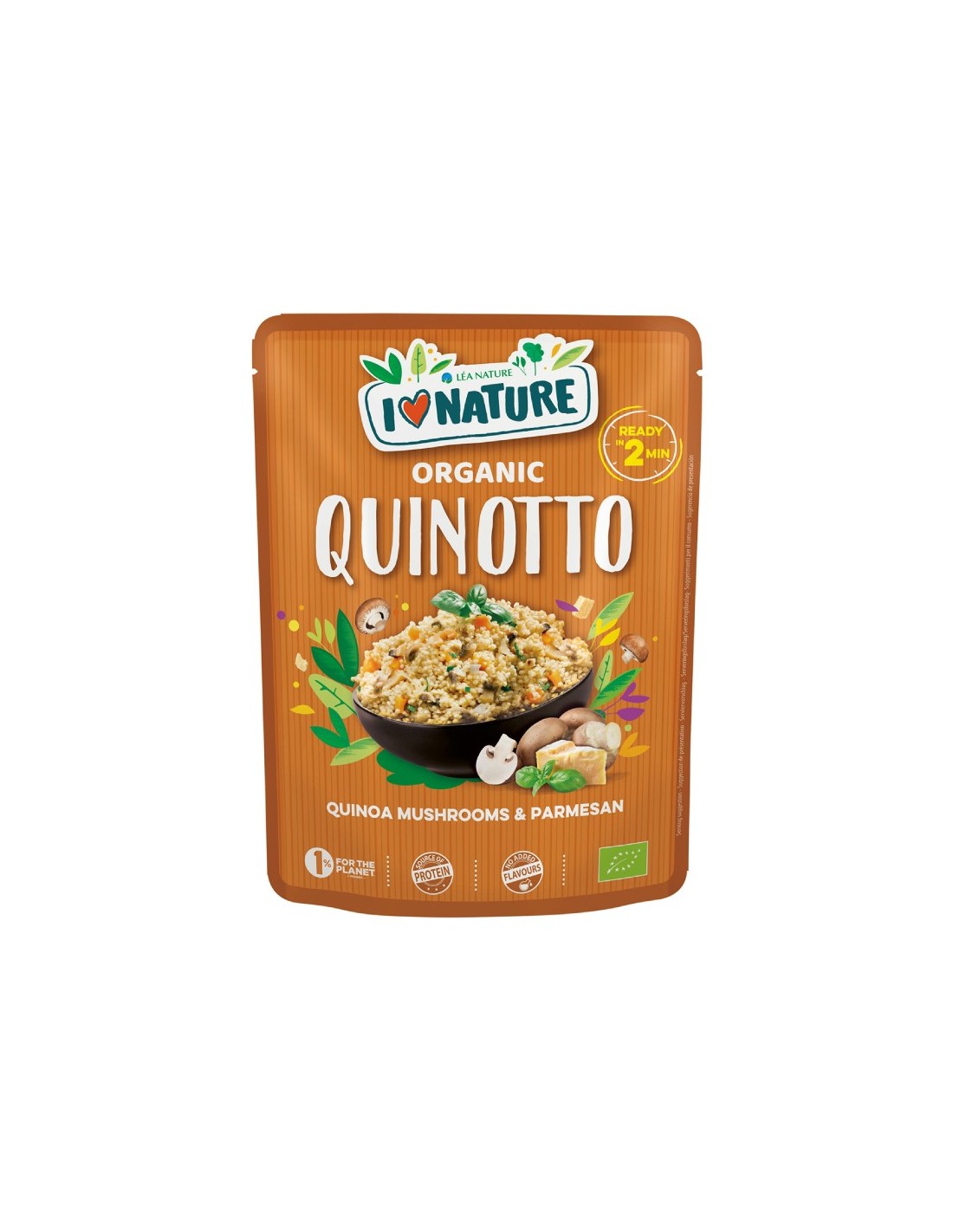 I LOVE NATUREDisfruta del Quinotto Champiñones y Parmesano de I LOVE NATURE, una deliciosa opción lista para preparar en minutos. Combina la suavidad de la quinua con el sabor intenso de los champiñones frescos y el toque cremoso del queso parmesano, creando un plato nutritivo y lleno de sabor. Ideal para quienes buscan una comida práctica, saludable y reconfortante. Perfecto para cualquier momento del día, este quinotto es una alternativa natural y sabrosa que te hará sentir bien por dentro y por fuera.