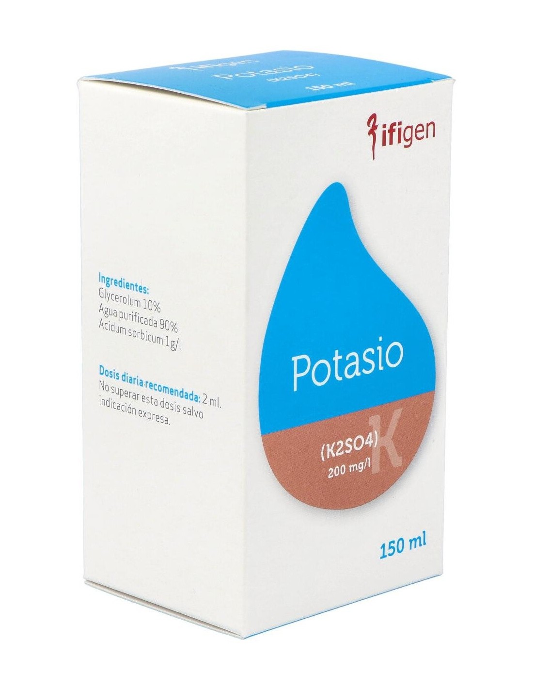 Potasio (K) Oligoelementos 150Ml. de Ifigen es un suplemento diseñado para personas que buscan complementar su ingesta diaria de minerales esenciales. Este producto está formulado para integrarse fácilmente en rutinas de bienestar, aportando potasio en una presentación líquida práctica.