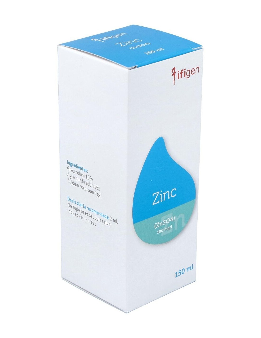 Zinc (Zn) Oligoelementos 150Ml. de Ifigen es un suplemento diseñado para personas que buscan complementar su ingesta diaria de zinc de manera práctica y controlada. Este producto es adecuado para quienes desean mantener un aporte constante de este mineral esencial en su rutina.