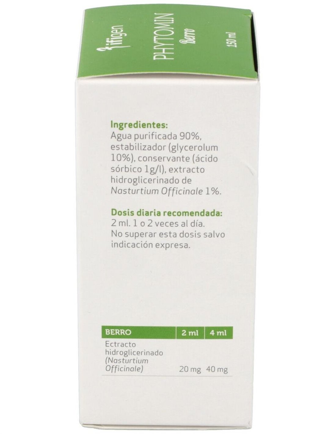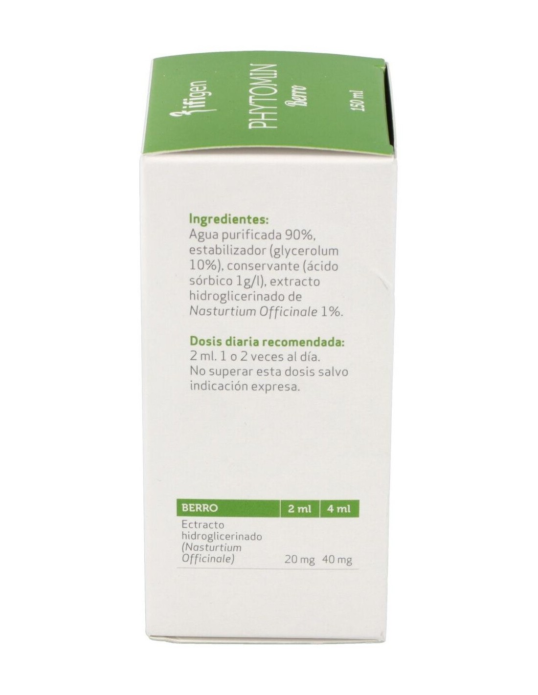 Phyto-Min Berro 150Ml. de Ifigen es un complemento natural diseñado para personas que buscan apoyar su bienestar diario mediante ingredientes de origen vegetal. Su formulación está pensada para integrarse fácilmente en rutinas de cuidado personal, aportando nutrientes específicos derivados del berro.