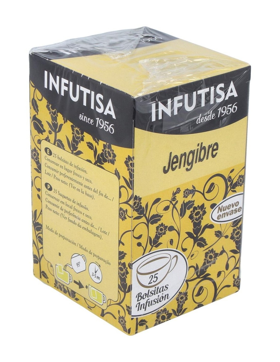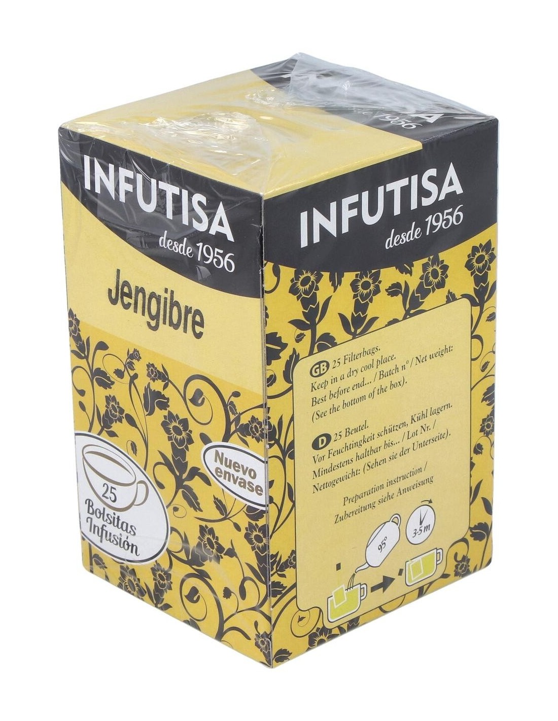 Infusión natural de jengibre que ayuda a neutralizar, equilibrar y reducir el exceso de ácido gástrico. El jengibre tiene propiedades antivirales y ayuda a combatir los virus. Contribuye al alivio sintomático de las dolencias del aparato respiratorio como infecciones, bronquitis, tos, gripe, etc. Posee, además, propiedades antiinflamatorias y analgésicas, por lo se utiliza comúnmente para ayudar a tratar dolores musculares y articulares, dolores de vientre y náuseas.