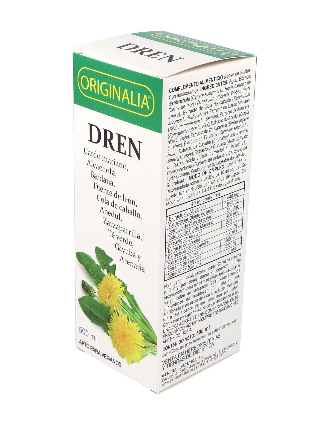 INTEGRALIAEl Dren Originalia Jarabe 500Ml. de Integralia es un complemento alimenticio para personas que buscan apoyar la función depurativa natural del organismo, formulado con ingredientes que contribuyen al bienestar general.